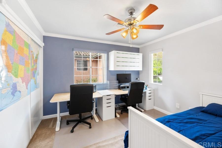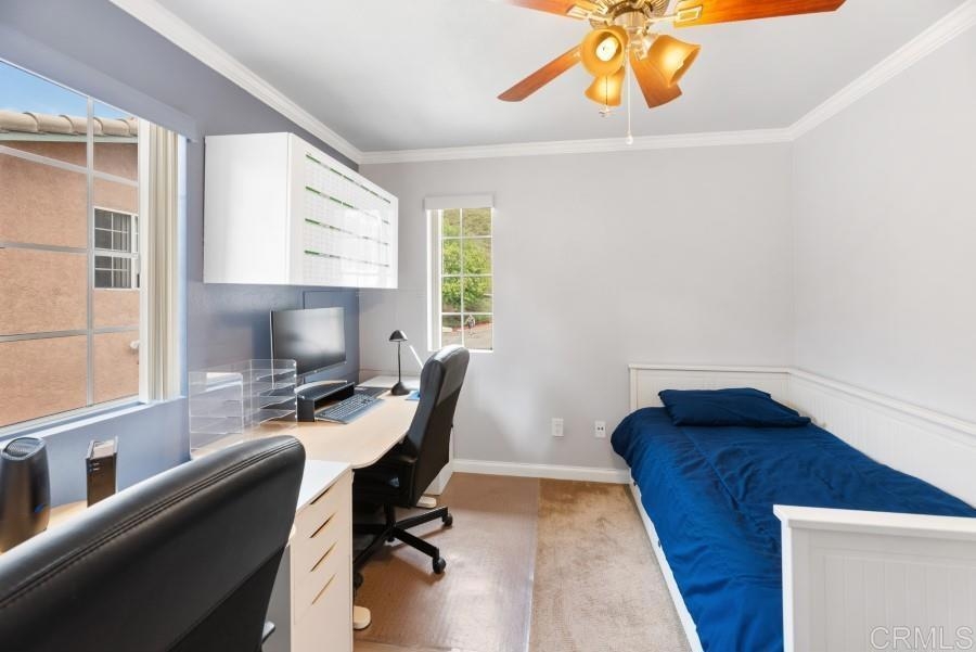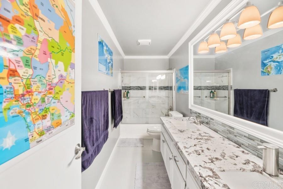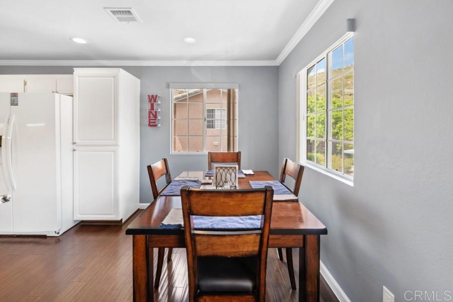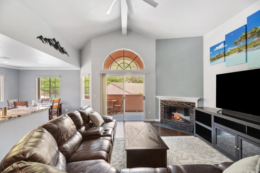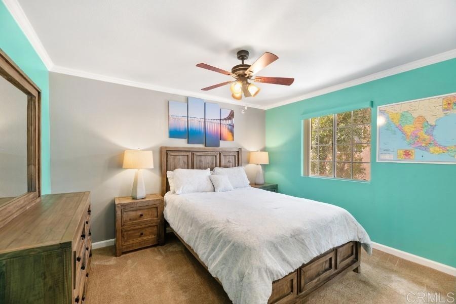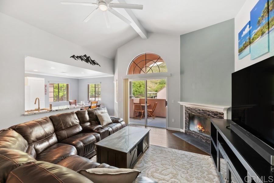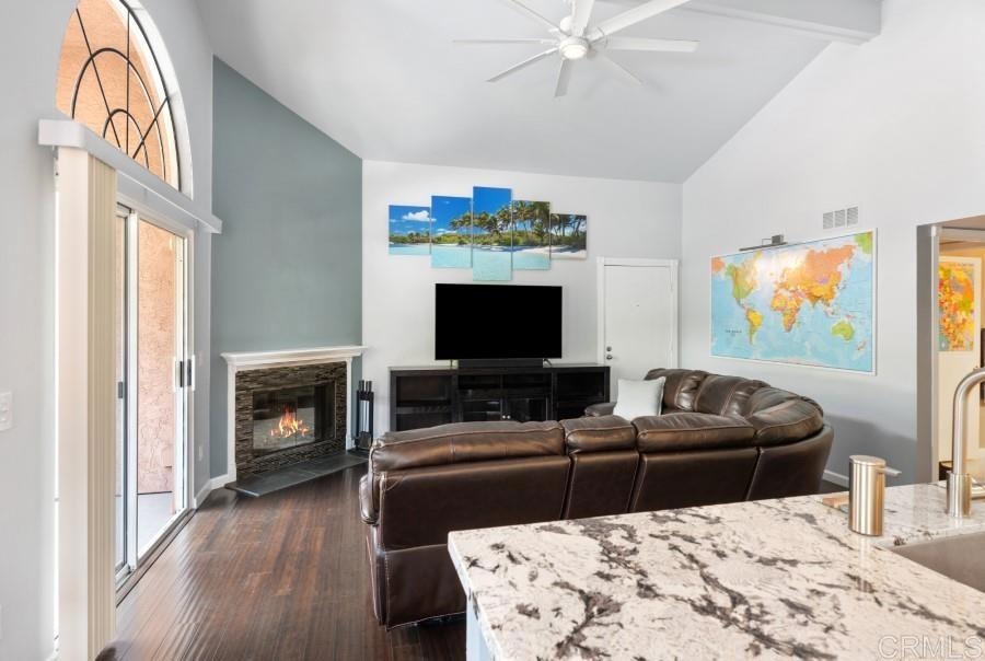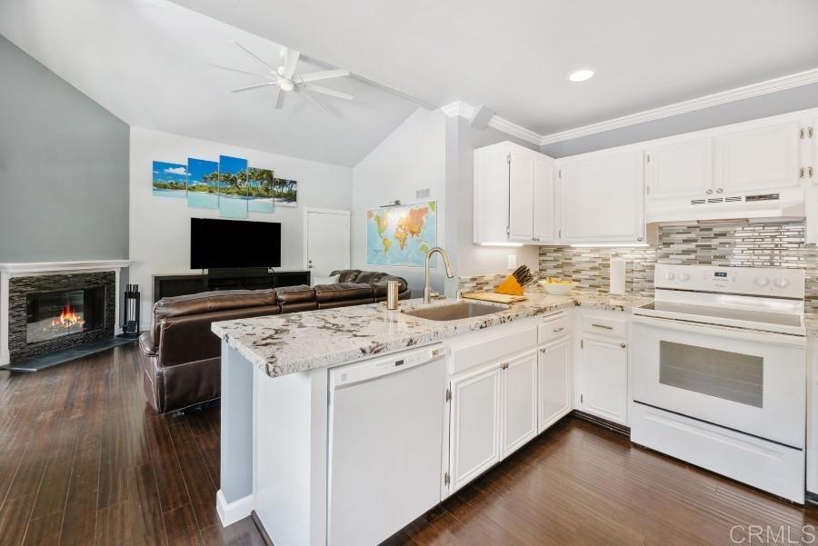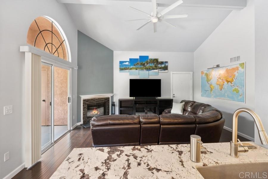 ENJOY THE BEAUTY OF RANCHO BERNARDO at THE SUMMIT! Beautifully furnished and the furniture and kitchen accessories can be included! Wonderful location within the complex at the north end providing privacy and peaceful surroundings. UPPER level 3 bedroom/2 bath with view/balcony! Enjoy this tastefully remodeled condo UPGRADED THROUGHOUT with high ceilings and view! Just bring your toothbrush and clothes and the furniture can stay! GARAGE with storage AND one dedicated parking space plus guest parking close by! Enjoy the chef's kitchen with high end Brazilian White Splendor granite counters and white cabinetry enhanced by the subway tile backsplash. Dark wood type plank flooring in living areas, crown molding and upgraded tile fireplace surround. Remodeled baths with the same high end granite counters! Spacious primary bedroom with a full wall width of closet. Interior laundry with full size side by side washer/dryer. Storage room on balcony. The Summit features 2 pools, 2 spas, tennis court, exercise room, banquet room with views! Close to 4S Ranch Commons without the Mello Roos and part of the Distinguished Poway Unified School District!