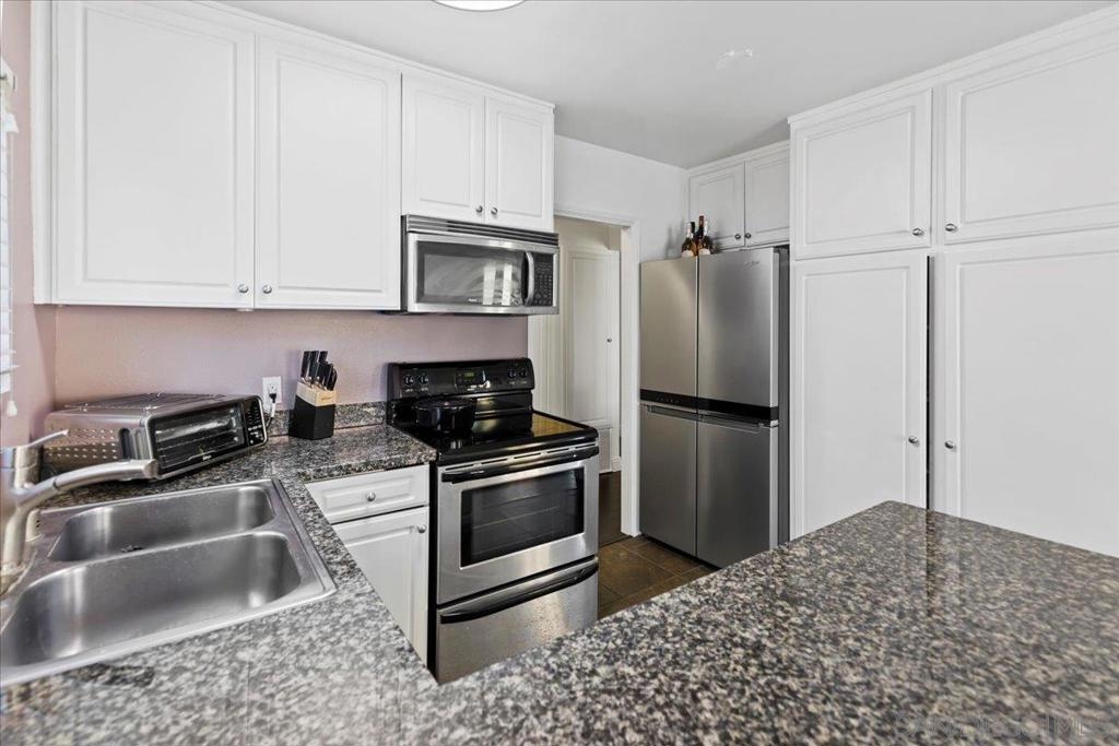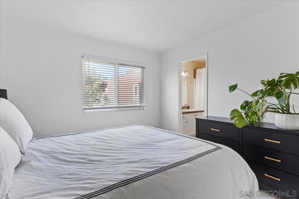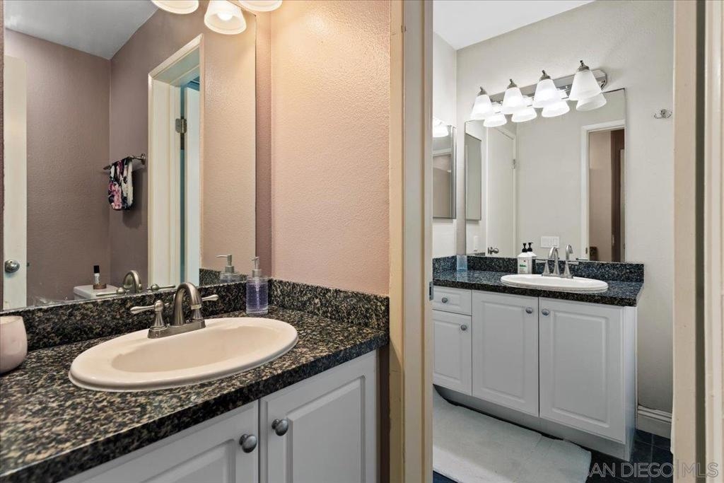 Tucked within the tranquil, park-like setting of the Waterbridge community in Rancho Bernardo, this beautifully appointed second-story end-unit offers a rare blend of privacy, natural light and thoughtful design. With only one shared wall, the home welcomes you with rich wood flooring that leads to an expansive living room adorned with soaring beamed ceilings and a serene private balcony. The open-concept layout flows seamlessly into a sun-drenched dining area and an upgraded kitchen featuring timeless granite countertops, stainless steel appliances, and generous cabinetry. There are two well-proportioned bedrooms, including a spacious primary suite with an oversized closet and a modern ensuite bathroom complete with designer cabinetry, granite surfaces, and a tastefully remodeled shower. A clever 1.25-bath configuration provides a separate vanity for added convenience and privacy. Additional highlights include central A/C, in-unit laundry with a stacked washer/dryer in the private balcony closet, dual-pane windows, and a dedicated parking space. Residents of Waterbridge enjoy beautifully landscaped grounds with meandering walking paths, tranquil ponds with fountains, and resort-style amenities such as a sparkling pool, separate children’s pool, spa, fitness center, clubhouse, BBQ and picnic areas and a playground. Ideally located just across from the Westwood Club and minutes to Westwood Elementary, local dining, shops, and major freeways, this home offers both peaceful retreat and everyday convenience in one of San Diego’s most desirable neighborhoods.