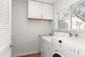 Highly desirable interior facing WESTWOOD townhome overlooking the large, lush greenbelt. Enjoy the 1 car garage + additional parking space, and a gated front outdoor courtyard. The main level features luxury vinyl flooring, kitchen with upgraded countertops and newer refrigerator, laundry room with full sized, side-by-side washer and dryer + tons of storage, and a powder room (half bath). The kitchen opens to the huge living/dining room area with a gas fireplace and sliding doors to the back patio with direct access to the greenbelt behind. Upstairs are 2 bedrooms plus the primary bedroom and a spacious bathroom with tons of counter space. The light and bright primary bedroom features an abundance of closet space and a view of the greenbelt. Amenities of the Westwood Community include highly rated schools and access to the Westwood Club, which offers a pools, spa, fitness center, tennis, racquetball, and pickleball courts, a mini-golf course, and more! Solar lease in place and will be assumed by buyer. HOA pays water and trash. Newer refrigerator and water heater. Some listing photos have been virtually staged. Unstaged photos also provided.