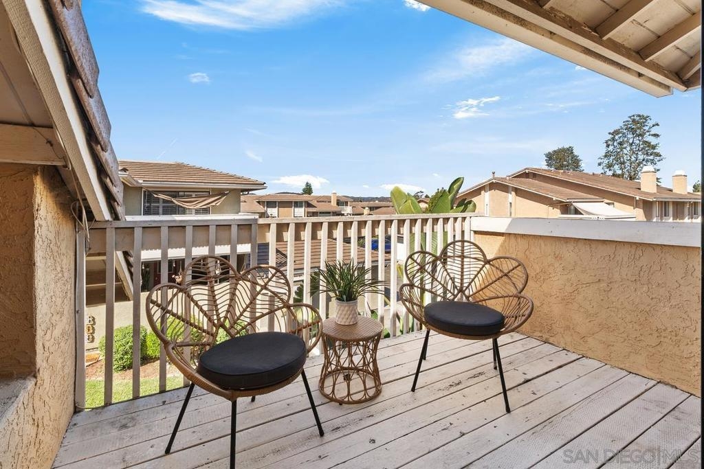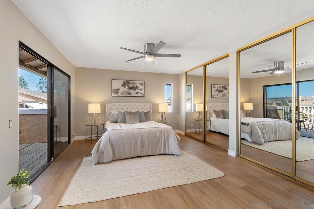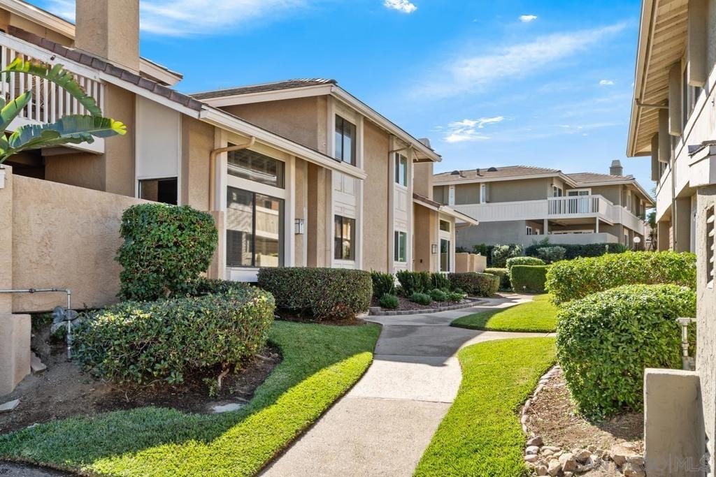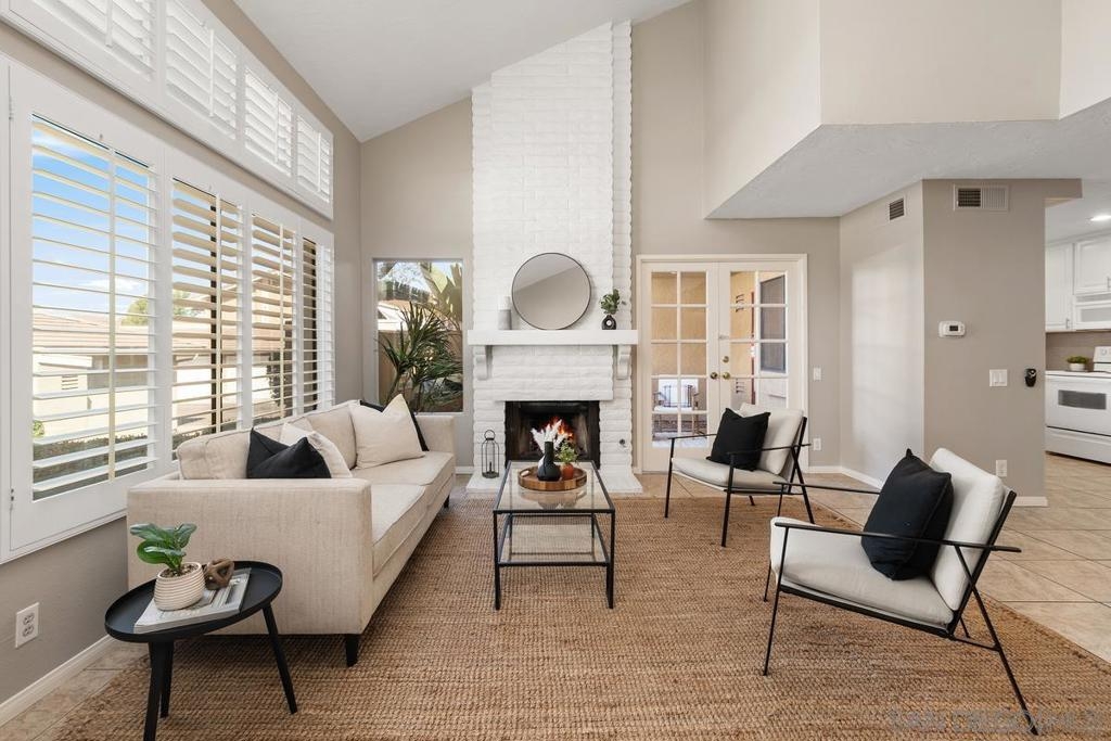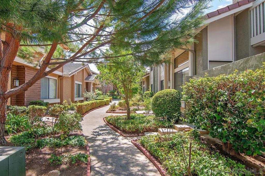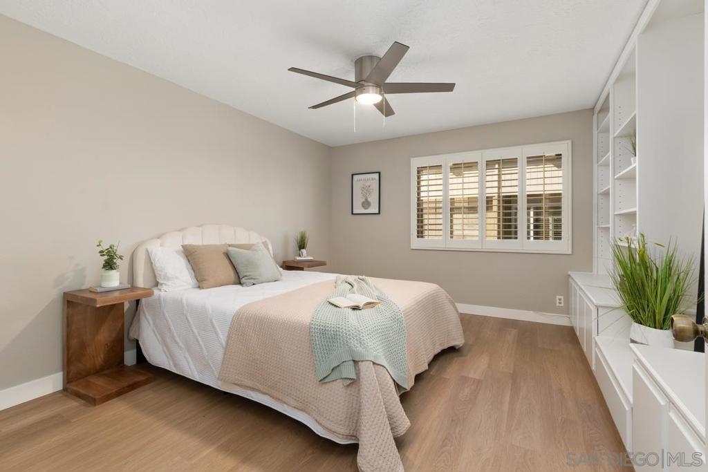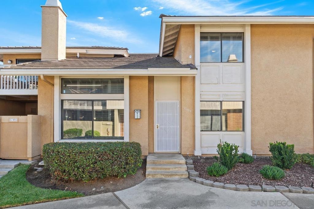 Move-in ready 3 bed/3 bath townhouse with brand new interior paint and luxury Vinyl Plank (LVP) flooring in the desirable Playmor community of Rancho Bernardo. One of the largest floor plans, with a convenient downstairs bedroom and full bath, making it perfect for easy accessibility. Step inside to discover vaulted ceilings and large windows complete with shutters, flooding the space with natural light. A cozy fireplace adds warmth and charm, while the private patio serves as an ideal retreat for relaxation or entertaining guests. The spacious primary suite includes an en-suite bathroom and a delightful private balcony, offering picturesque views of the surrounding area. This home also features a 1-car detached garage equipped with storage shelves, plus a dedicated parking spot conveniently located next to the townhouse for added convenience. With HOA fees, residents enjoy amenities including cable TV, a community pool, spa, playground, and tennis courts. Centrally located just moments away from freeways, restaurants, and shops, making it the perfect blend of comfort and convenience.