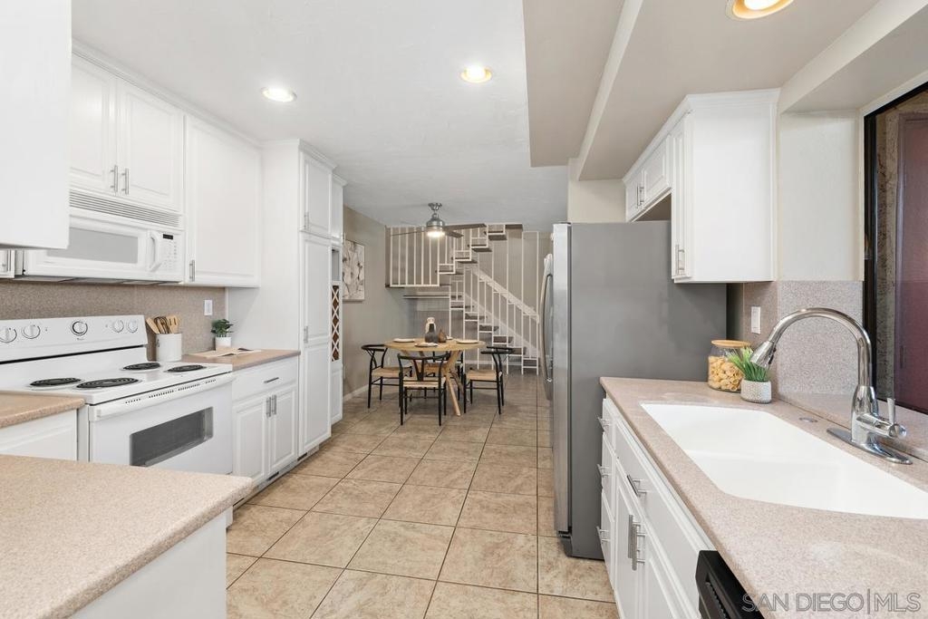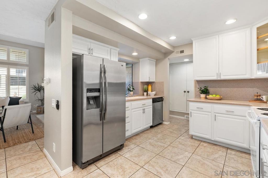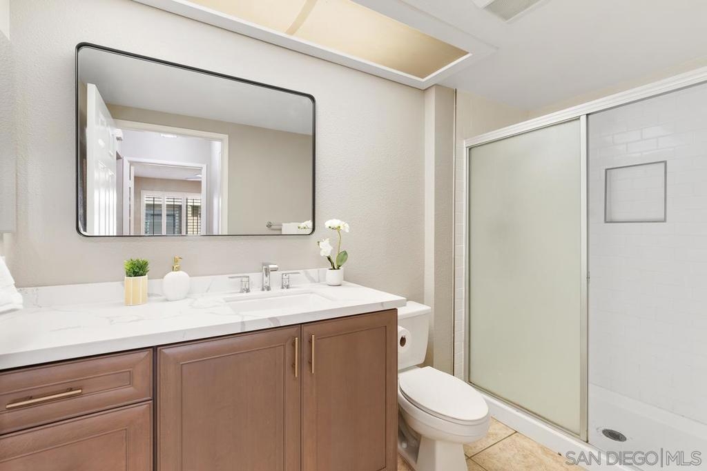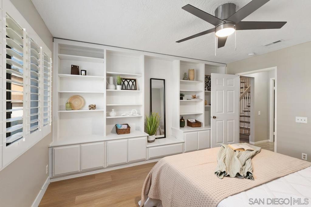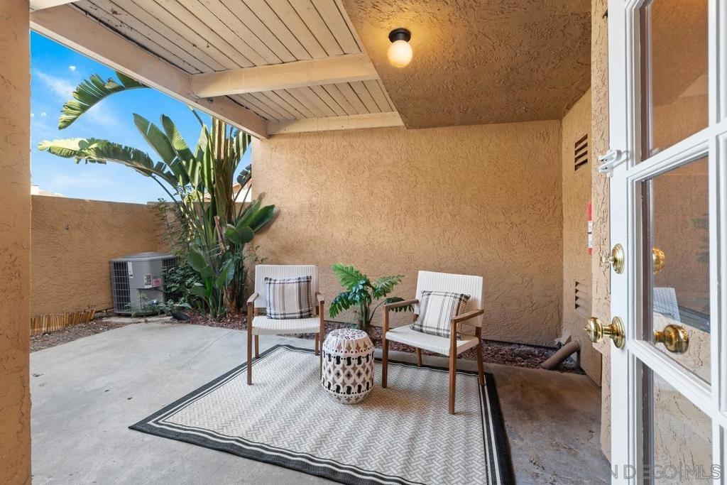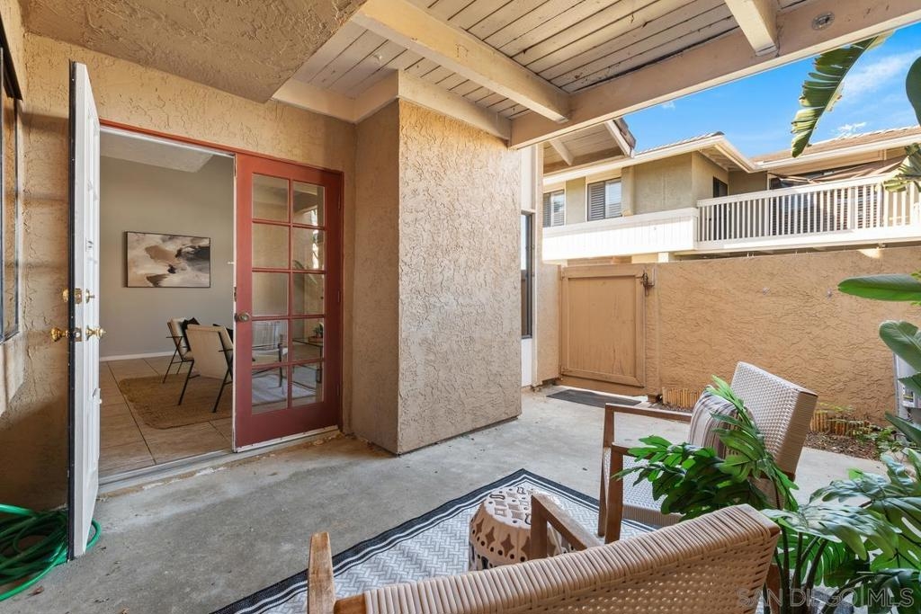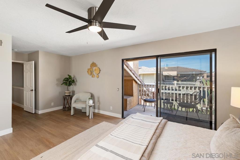 Move-in ready 3 bed/3 bath townhouse with brand new interior paint and luxury Vinyl Plank (LVP) flooring in the desirable Playmor community of Rancho Bernardo. One of the largest floor plans, with a convenient downstairs bedroom and full bath, making it perfect for easy accessibility. Step inside to discover vaulted ceilings and large windows complete with shutters, flooding the space with natural light. A cozy fireplace adds warmth and charm, while the private patio serves as an ideal retreat for relaxation or entertaining guests. The spacious primary suite includes an en-suite bathroom and a delightful private balcony, offering picturesque views of the surrounding area. This home also features a 1-car detached garage equipped with storage shelves, plus a dedicated parking spot conveniently located next to the townhouse for added convenience. With HOA fees, residents enjoy amenities including cable TV, a community pool, spa, playground, and tennis courts. Centrally located just moments away from freeways, restaurants, and shops, making it the perfect blend of comfort and convenience.