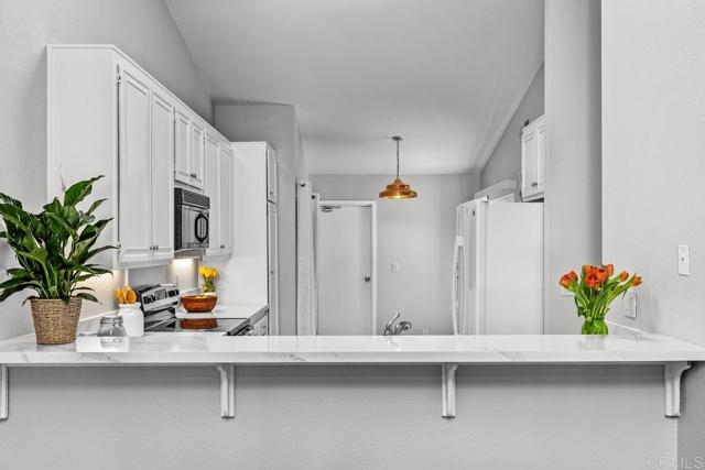 This beautifully appointed, single-level home in the active 55+ senior community of Oaks North Villas is located in a prime location along the green belt and has been nicely updated and cared for. You’re instantly greeted by the garden-like setting and the private, spacious courtyard. As you step inside, you’ll notice the freshly painted interior and vaulted ceilings that create a bright and welcoming atmosphere. The open floorplan seamlessly flows from the stylish and spacious kitchen to the inviting living spaces. The kitchen boasts new quartz countertops and backsplash, new kitchen sink, a beautiful copper light, and laundry closet. Illuminated by the skylight with remote control shade, the living and dining spaces overlook the lovely patio and garden. Through the hallway with storage closet, you’ll find two spacious bedrooms, each with a slider, and updated baths. The spacious primary room has two closets and a bathroom with a new vanity and sink. The secondary room has a nice slider that provides direct access to the front courtyard. For added convenience, the home has been updated with newer HVAC & Condenser, water heater, dishwasher, oven/range, disposal, and garage door opener and springs. With direct access to the attached garage, you can enjoy the cleanliness of epoxy floors and the ample storage in the rafters and storage cabinets. Step through one of the two dual-paned sliders from the living room or primary bedroom to enjoy the very tranquil, quiet and lovely rear landscaping. Residents receive access to the many amenities of the Oaks North Community Center including a swimming pool, spa, pickleball, tennis courts, a well-stocked library, art and sewing rooms, a wood shop, a billiards room, and multiple game rooms for card games and other activities. Also, this home is conveniently located near the Bernardo Winery, Oaks North Golf Course and farmer's market. HOA includes home exterior, roof and landscaping maintenance, fencing, gates, and limited homeowners insurance.