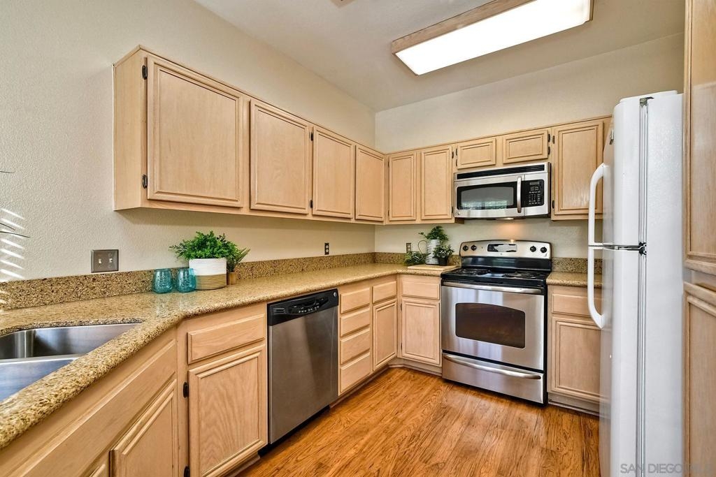 This beautiful upstairs unit sits far in the back with hillside views and privacy! This fantastic 2 bed/2 bath unit has been well maintained and has a great floorplan maximizing the space! Laundry closet, garage, and plenty of parking. The resort amenities include, pool, weight room, playground, courts! Gated community. Poway Schools. Close to shopping, trails, and freeways.
