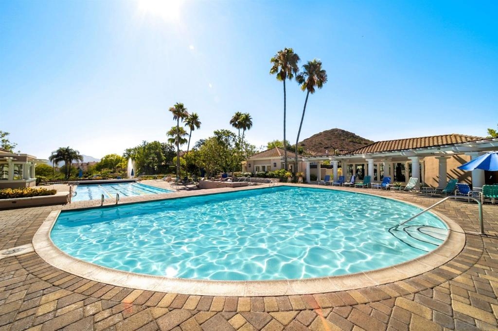 Come enjoy serene mountain views in this stunning unit in the gated community of Morada at Bernardo Vista Del Lago. As you enter you will gaze upon a light and bright open floor plan that allows the living room, dining area and kitchen to flow seamlessly together. The living room enjoys a cozy fireplace and access to a peaceful balcony. The kitchen features crisp, white cabinetry, granite counters accented by a subway tile backsplash, recessed lighting, stainless steel appliances and an eat-at counter. The in-unit laundry closet fits a full-size stackable washer and dryer. Dual primary bedrooms with en suite bathrooms. One assigned carport space will make parking a breeze. Morada offers an exclusive heated pool and spa for its residents. Bernardo Vista del Lago is a guard gated community that offers all residents resort-style amenities such as a clubhouse, two sparkling pools and spas, an exercise room, a recreation room, tennis courts, a tot lot and outdoor BBQs. Quick freeway access will make commuting a breeze. Close to Rancho Bernardo Community Park with ball fields, a dog park, public tennis courts. Surrounded by open space and Lake Hodges providing miles of trails to explore all year long. To see it is to love it! Complex Features: ,,,,,,,, Other Fees: 103 Other Fees Type: , Sewer: Sewer Connected Topography: LL