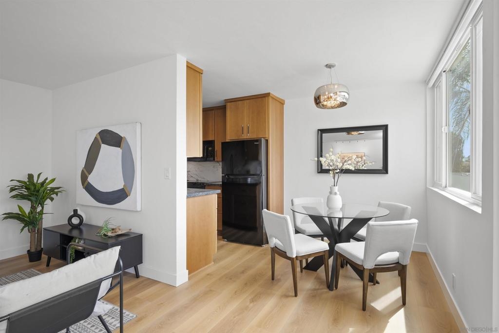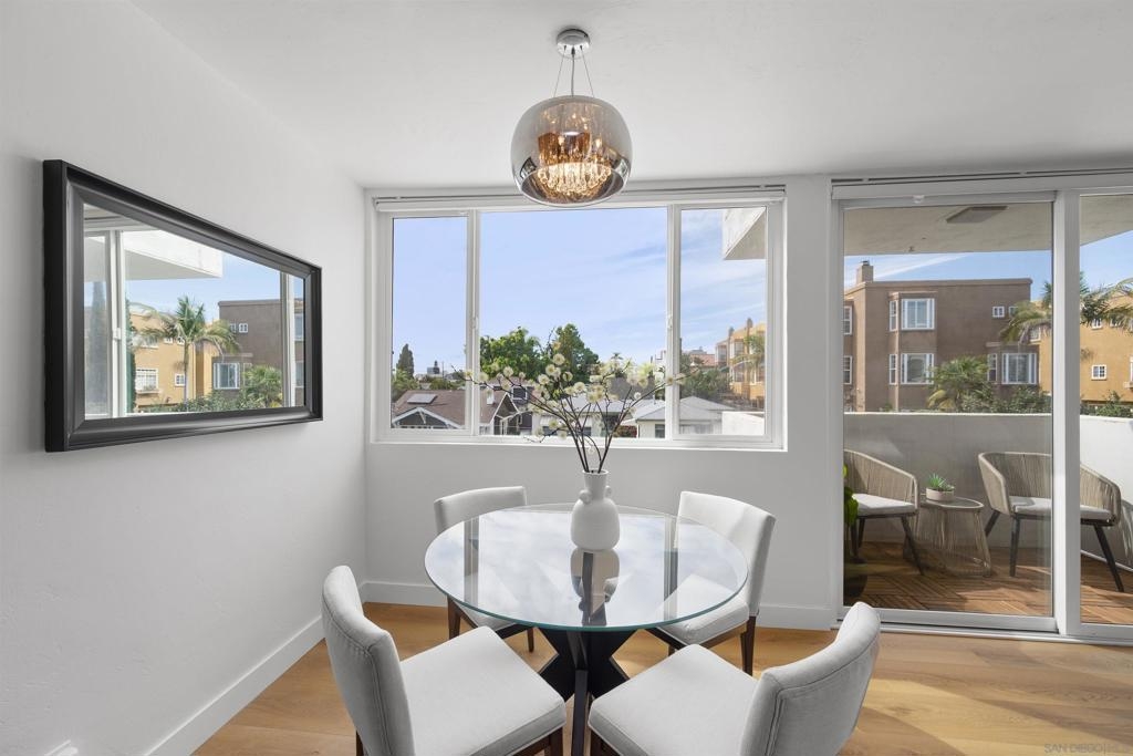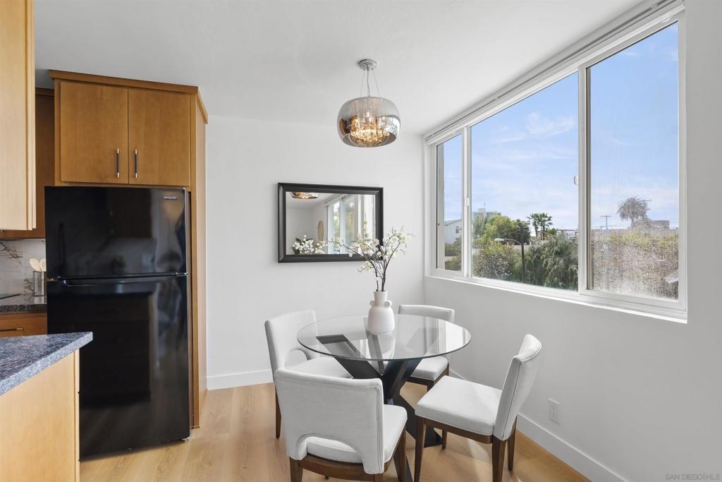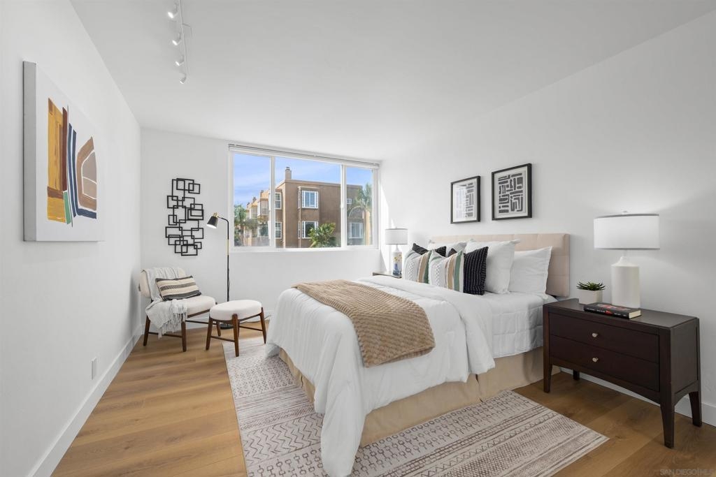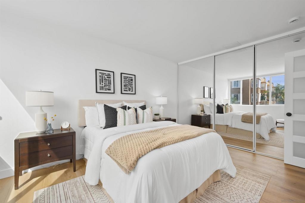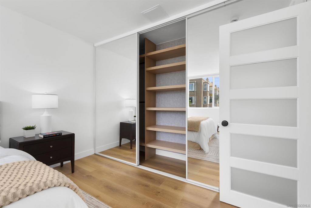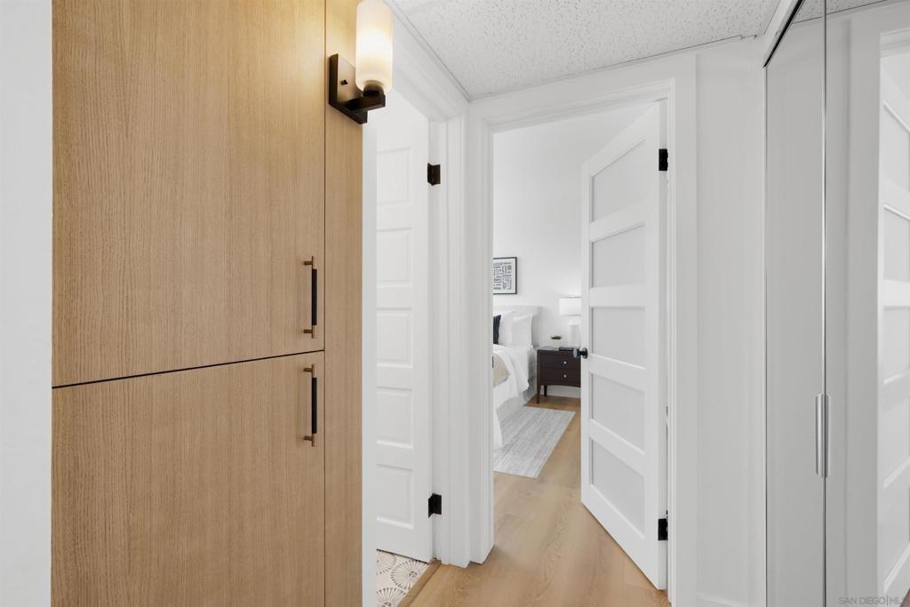In North Park, with Hillcrest just across the street, this boutique-style building is tucked away on a quiet, low-traffic street. This bright, sunlit west-facing unit features a balcony ideal for enjoying the views. Enjoy walkable access to cafés, restaurants, farmers markets, groceries, and everyday shopping in both neighborhoods, plus nearby Balboa Park, the San Diego Zoo, and Morley Field. Beautifully renovated with light-oak, wood-look waterproof laminate flooring, fresh paint, updated light fixtures throughout, and upgraded kitchen and bath. Kitchen features new backsplash, refrigerator, sink/faucet, updated plumbing, and new cabinet hardware. The bathroom is fully renovated—everything is brand new. Custom built-ins add exceptional storage, including hallway shelving and a newly added closet with built-in shelving in the primary bedroom. Amenities include a pool, sauna, rooftop BBQ lounge with views, bike room, and community laundry. Beautifully renovated throughout with light-oak wood-look waterproof laminate flooring, fresh interior paint, and updated light fixtures. Located in a boutique-style building, this home offers a thoughtfully designed layout with custom built-ins for exceptional storage, including hallway shelving and a newly added closet with built-in shelving in the primary bedroom. Both the kitchen and bath were upgraded with updated plumbing and all-new fixtures. Kitchen upgrades include a new backsplash, refrigerator, sink, faucet, and cabinet hardware. The bathroom has been fully renovated with an all-new tub/shower, vanity, toilet, fixtures, and finishes. Includes one assigned parking space with easy in-building access. Window treatments on all windows. Community laundry facility available for residents.