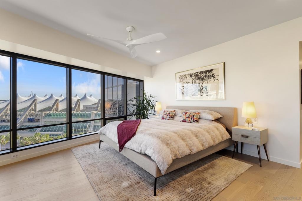 Experience refined luxury in this rarely available, beautifully updated, meticulously maintained residence in Harbor Club’s iconic East Tower, one of downtown San Diego’s premier high-rise communities. This expansive 2-bedroom, 2-bath home offers approximately 1,572 sq ft of thoughtfully designed living space, highlighted by floor-to-ceiling windows that capture natural light from sunrise to sunset and showcase sweeping panoramic views of the city skyline, San Diego Bay, Marina, and Coronado Bridge. Sophisticated finishes elevate daily living, including a curated designer color palette, hardwood flooring, quartz countertops, custom cabinetry throughout, marble bathroom flooring, recessed lighting, and a chef-inspired kitchen that flows seamlessly into generous living and dining areas—ideal for entertaining. The primary suite is a serene retreat with stunning Marina views and a spa-style bath. The guest bedroom and living room open to an expansive private balcony, extending the living space outdoors. Harbor Club residents enjoy resort-style amenities including a 95-foot lap pool, spa, sauna, fitness center, landscaped pool deck with BBQs and fire pits, community lounge and clubroom, concierge service, and a 24-hour staffed lobby. Ideally located in the Marina District, this exceptional home offers walkable access to the bayfront, dining, entertainment, and iconic destinations such as Seaport Village, The Rady Shell, USS Midway Museum, Petco Park, and the Convention Center. With only three residences per floor, this is a rare opportunity for premier downtown living.