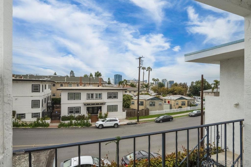 ALL CASH BUYERS ONLY, Great starter place or investment property in Bankers Hill near Balboa Park and walking distance to restaurants. Easy access to freeway and downtown San Diego. Both bedrooms are upstairs, kitchen has been updated with stainless steel appliances, newer cabinets and Dekton countertops. Ground floor half bath, flooring and stairwell are also updated. Flooring is porcelain wood grain tile. Unit has stack washer / dryer on ground floor, city view balcony off primary bedroom, 2 spaces in carport, and a storage locker. 6 unit complex. Refrigerator does not convey, all other appliances in unit stay. Unit has the first 2 parking spaces next to the entry gate in the 3rd Avenue carport area. ALL CASH BUYERS ONLY, due to HOA special assessment for balcony repairs / replacement for the building by years end.