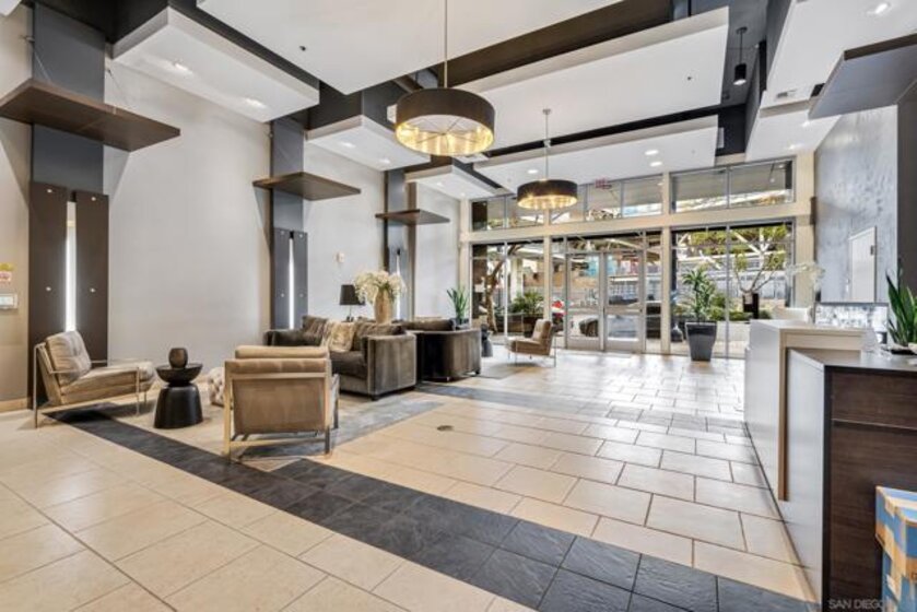 Perfectly positioned across from Petco Park, this thoughtfully designed condo offers a peaceful retreat with incredible city lifestyle perks just a short distance away. Enjoy views of the courtyard and stadium from an oversized balcony that extends your living space outdoors—ideal for morning coffee or evening unwinding. Inside, bright, wide-plank vinyl floors complement the open layout, while the kitchen impresses with granite countertops, stainless steel appliances, and abundant cabinet space. Custom lighting, updated bathroom tile, and organized closets complete the move-in-ready appeal. This residence also includes a dedicated underground parking space. Park Terrace is a VA-approved community offering exceptional amenities, including 24-hour security, a fully equipped fitness center, rooftop BBQ terraces on the 2nd and 5th floors, a recreation room, interior courtyard seating, bike storage, on-site property management, and a sleek, modern lobby entrance. Explore the best of Downtown living—just a short distance to Petco Park, Gallagher Square, the historic Gaslamp Quarter’s shops and dining, the Central Library, bus and trolley transportation, FIT Athletic Gym, and the Harbor Drive Pedestrian Bridge, which connects to The Rady Shell, the Convention Center, Seaport Village, Embarcadero Parks, the Coronado Ferry, and more. The lifestyle you’ve been waiting for starts here. Park Terrace is a VA-approved community offering exceptional amenities, including 24-hour security, a fully equipped fitness center, rooftop BBQ terraces on the 2nd and 5th floors, a recreation room, interior courtyard seating, bike storage, on-site property management, and a sleek, modern lobby entrance. Explore the best of Downtown living—just a short distance to Petco Park, Gallagher Square, the historic Gaslamp Quarter’s shops and dining, the Central Library, bus and trolley transportation, FIT Athletic Gym, and the Harbor Drive Pedestrian Bridge, which connects to The Rady Shell, the Convention Center, Seaport Village, Embarcadero Parks, the Coronado Ferry, and more. The lifestyle you’ve been waiting for starts here.