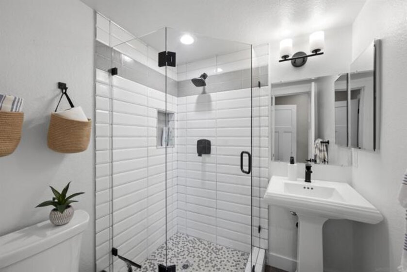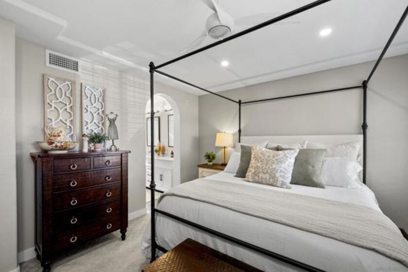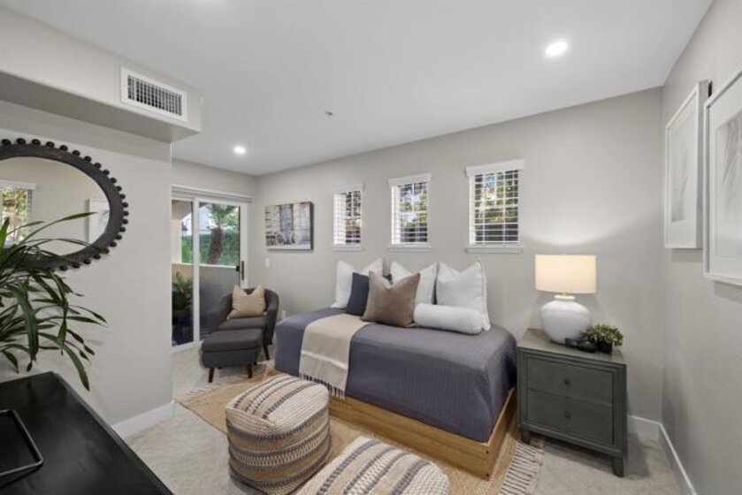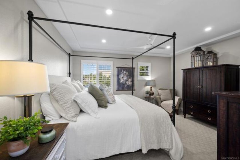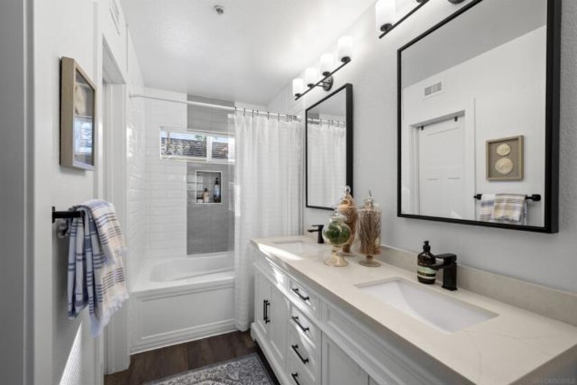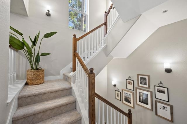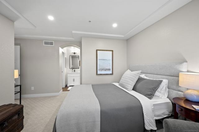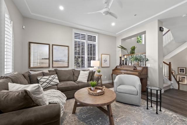 Luxury living in this rarely available, turn-key 3 bedroom3.5 bath end unit townhome in the heart of Liberty Station. This spacious home has been beautifully upgraded with vinyl wood plank flooring, Berber carpeting and shutters throughout. Gourmet Kitchen with Caesar stone Lyra countertops, custom kitchen cabinets, tiled backsplash, and GE Café series appliance package including Café refrigerator and 6-burner stove. Baths have newer cabinets, counter tops, mirrors and fixtures. Added bonus is the Halo home water purification system installed in 2024. Surrounded by trees, this home offers the utmost in privacy and green views. It's just a short walk to restaurants, cafes, shopping including Trader Joe's, the famed Liberty Public Market, movie theater, NTC Park spanning 46 acres on the waterfront, sporting club and the newly opened Cygnet theater. Minutes to downtown, airport, entertainment and all that San Diego has to offer.