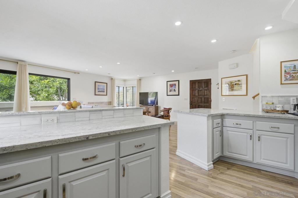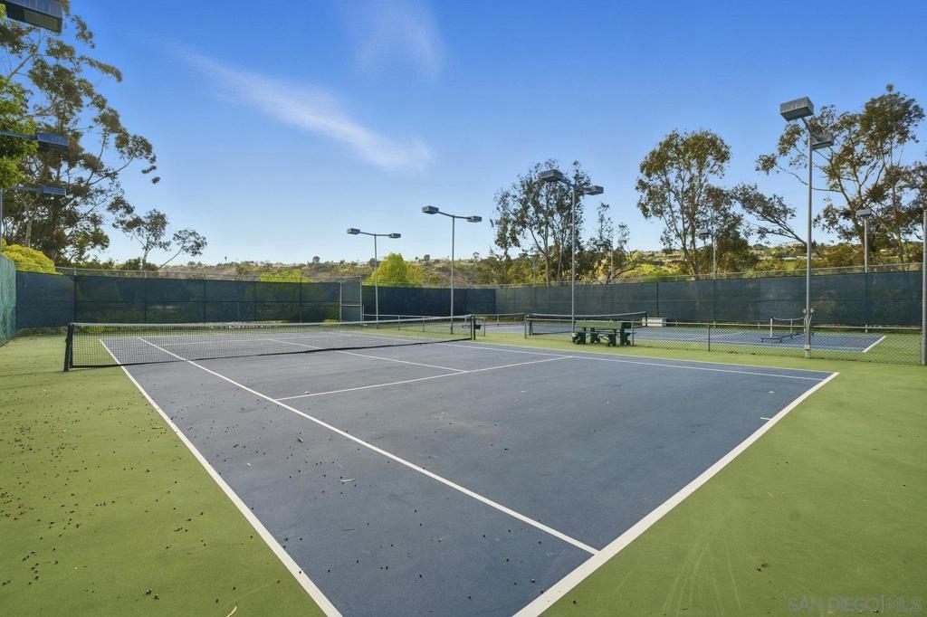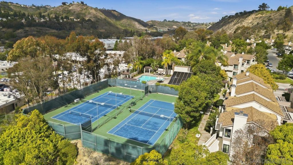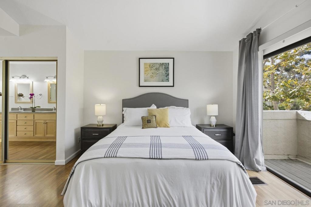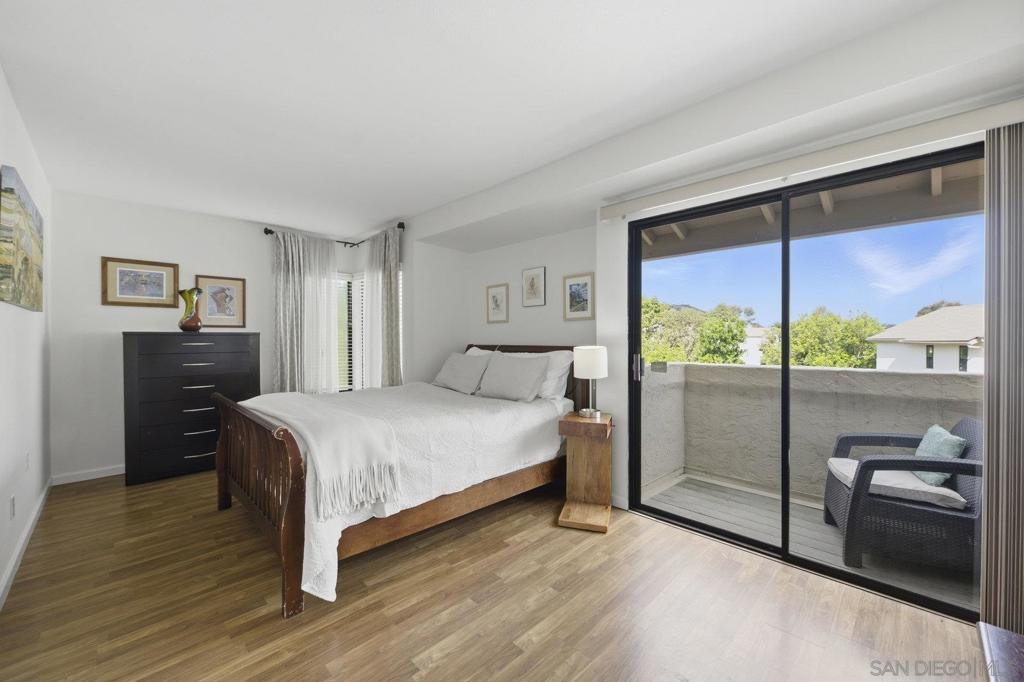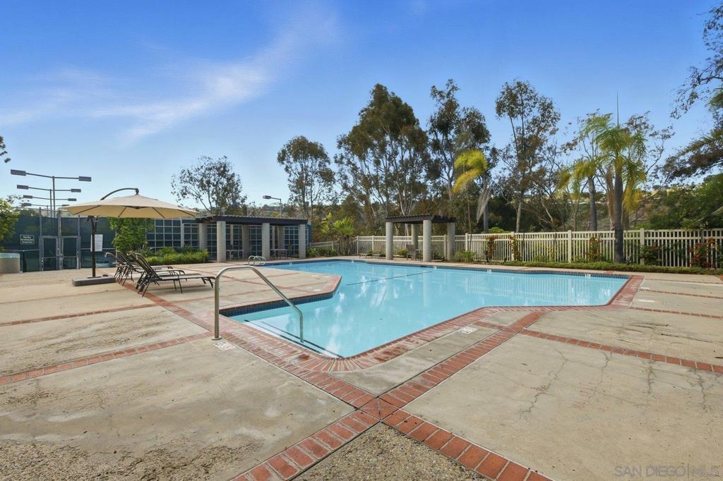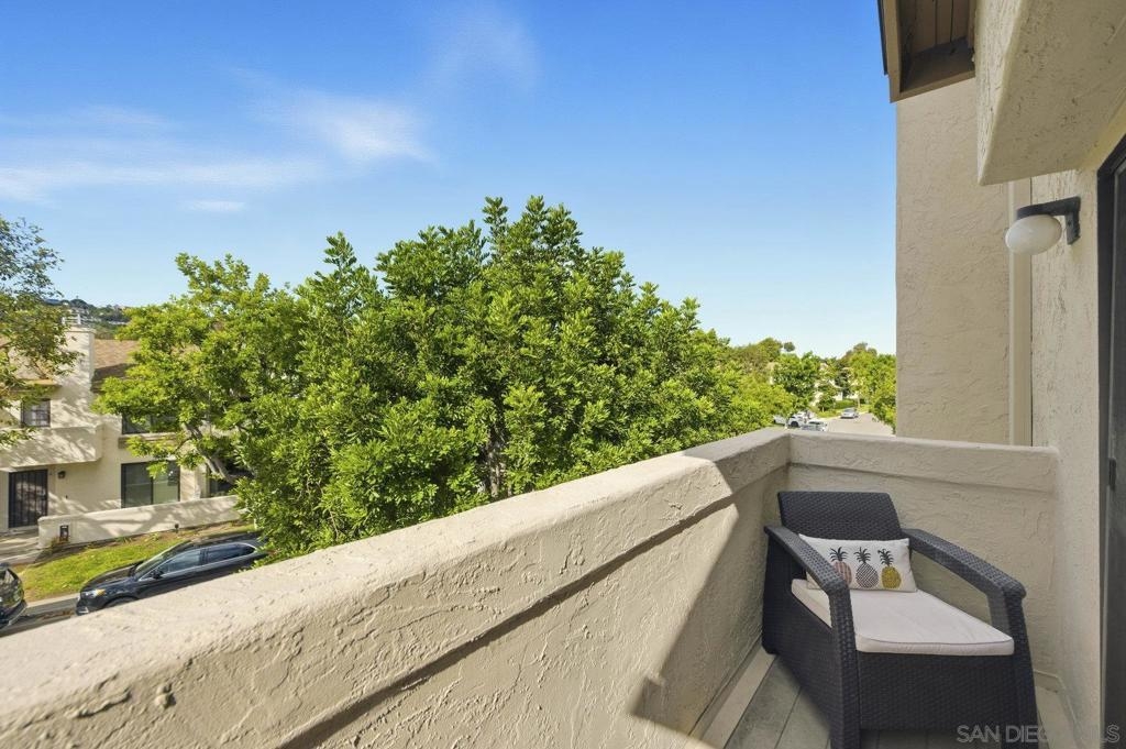 Rarely on the market Canyon Rim’s largest floor plan END UNIT featuring 2 beds 2.5 baths and 3 decks. Highly desirable Canyon Rim community is located just 4 miles to the beach! SOLAR. Entire interior painted 2023. California indoor outdoor living at its best with attached deck off the kitchen and dining area, oversized spacious 2 car garage with full-sized washer/dryer and ample storage space. Dual pane windows and doors throughout. Spacious primary bedroom with newly added AC/heating system, dual sink vanity, walk in shower and attached deck overlooking Canyon Rim’s lush and mature landscape. 2nd en-suite bedroom with attached deck and upgraded bath. Additional seller upgrades include kitchen remodel including granite countertops, tiled backsplash, appliances, refaced kitchen cabinetry, whole house water filtration and reverse osmosis system, blinds and drapes throughout. Laminate flooring and recessed lighting throughout. Only ONE adjacent neighbor and no neighbors above or below. This peaceful and beautifully landscaped community offers 2 pickleball courts, 2 tennis courts, solar heated sparkling pool and spa, clubhouse and BBQ. Easy access to freeways, the beach, nearby shopping and restaurants set back in beautiful Rose Canyon. HOA installed BRAND NEW ROOF 2024. Termite Fumigation to entire community 2024 and painted all exterior. Welcome Home!