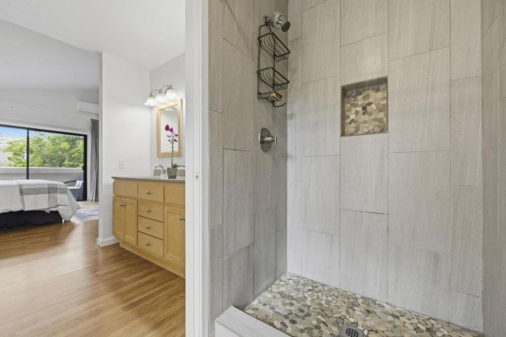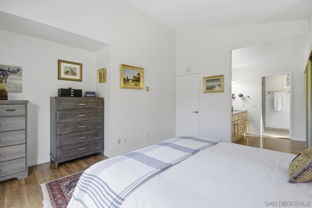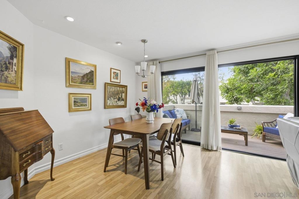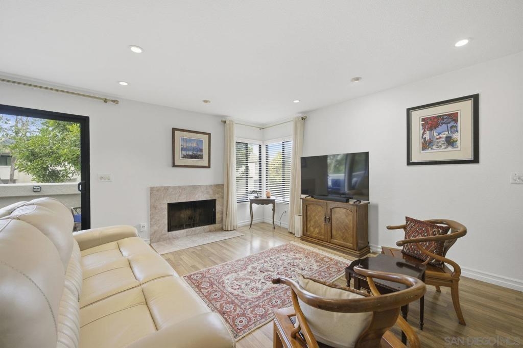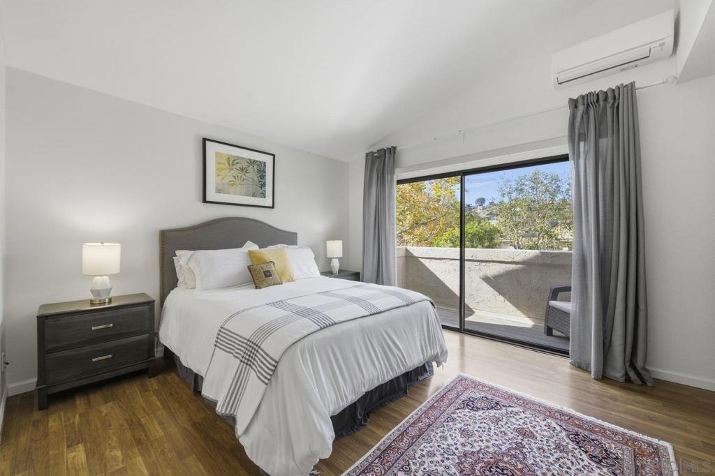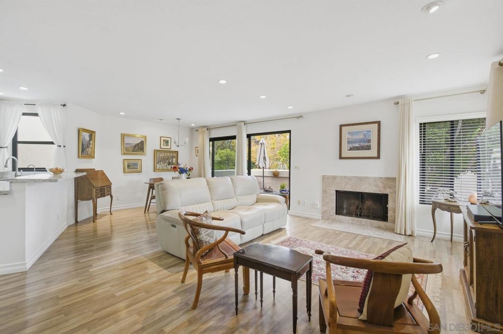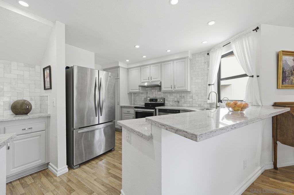 Rarely on the market Canyon Rim’s largest floor plan END UNIT featuring 2 beds 2.5 baths and 3 decks. Highly desirable Canyon Rim community is located just 4 miles to the beach! SOLAR. Entire interior painted 2023. California indoor outdoor living at its best with attached deck off the kitchen and dining area, oversized spacious 2 car garage with full-sized washer/dryer and ample storage space. Dual pane windows and doors throughout. Spacious primary bedroom with newly added AC/heating system, dual sink vanity, walk in shower and attached deck overlooking Canyon Rim’s lush and mature landscape. 2nd en-suite bedroom with attached deck and upgraded bath. Additional seller upgrades include kitchen remodel including granite countertops, tiled backsplash, appliances, refaced kitchen cabinetry, whole house water filtration and reverse osmosis system, blinds and drapes throughout. Laminate flooring and recessed lighting throughout. Only ONE adjacent neighbor and no neighbors above or below. This peaceful and beautifully landscaped community offers 2 pickleball courts, 2 tennis courts, solar heated sparkling pool and spa, clubhouse and BBQ. Easy access to freeways, the beach, nearby shopping and restaurants set back in beautiful Rose Canyon. HOA installed BRAND NEW ROOF 2024. Termite Fumigation to entire community 2024 and painted all exterior. Welcome Home!