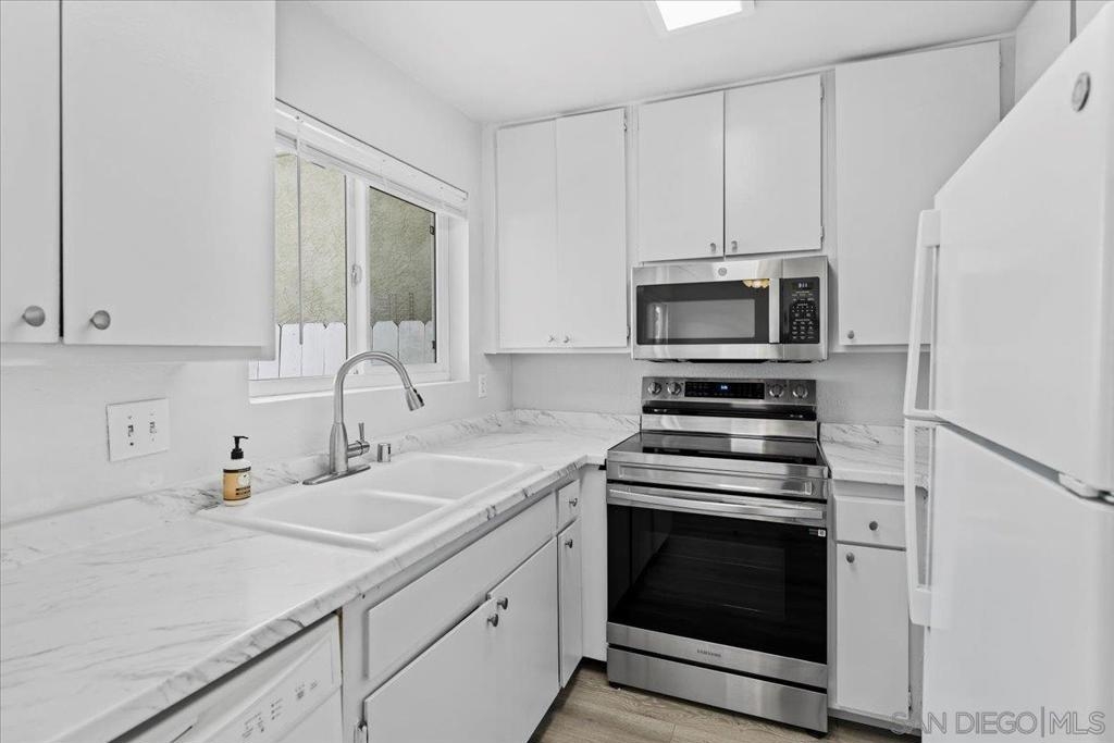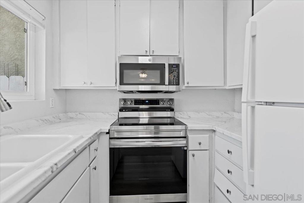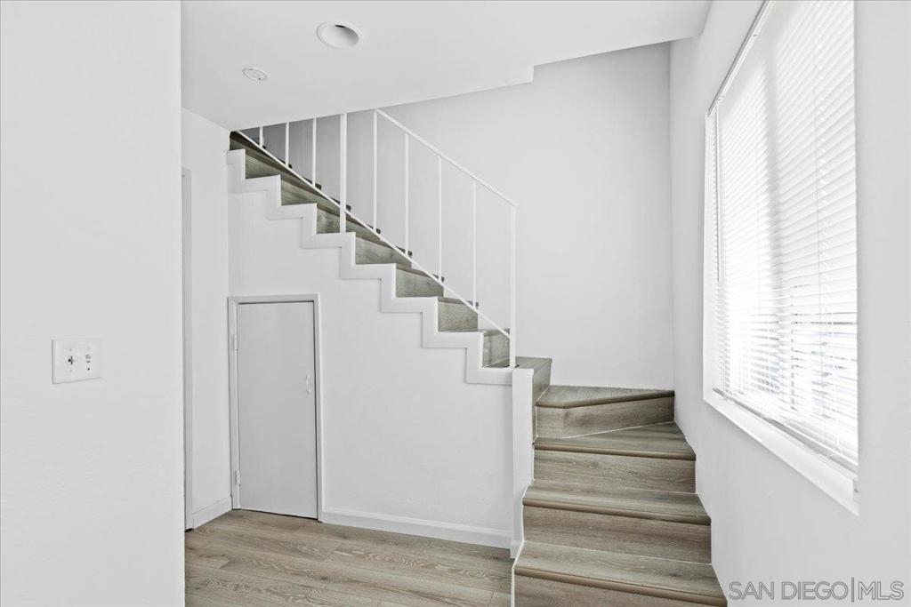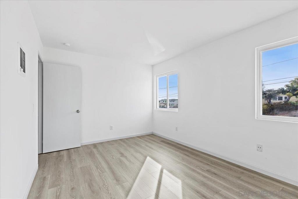 Discover this beautifully remodeled, turn-key residence showcasing sweeping canyon and neighborhood views from its expansive, elevated lot. Recently updated with designer-selected paint and new luxury vinyl plank flooring throughout, the home welcomes you with a bright, open living space that flows seamlessly into the dining area and view-oriented kitchen. The kitchen offers abundant cabinetry and stainless steel appliances, all positioned to capture serene vistas of the canyons and distant mountains. The expansive backyard invites effortless outdoor living, featuring a spacious patio and endless potential as the usable yard extends well beyond the existing fence line. Upstairs, two generously sized bedrooms and a tastefully updated bathroom create a comfortable and tranquil private retreat. Attached on only one side—with no neighbors above or below—the home lives like a detached property and offers the rare benefit of NO HOA fees. Additional highlights include a full-size laundry area, four dedicated parking spaces and a convenient storage shed. Ideally situated near shops, schools, parks and scenic hiking trails, and just minutes to major freeways and Balboa Park, this exceptional opportunity combines comfort, convenience, and captivating views.