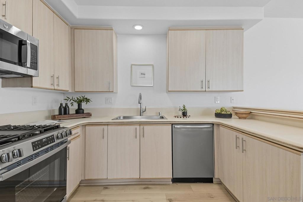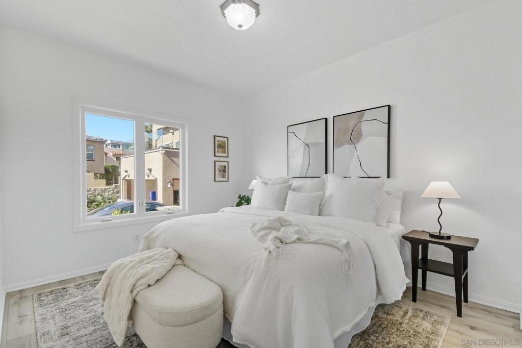 This updated corner condo offers features you rarely find in one place: panoramic views of the bay and downtown skyline, a private two cargarage with a large bonus room, high ceilings, and abundant natural light. From the moment you step inside, the sense of openness isundeniable. Walls of windows frame the harbor and cityscape, while the living room with its cozy fireplace flows into a bright layout in aboutique community of just 12 homes. As a corner end unit, it also provides a private entrance, and its southwestern exposure fills the homewith sunlight throughout the day. The two bedroom, two bath floor plan is practical and inviting, with a primary suite designed to take in theviews and an en suite bath that includes a jacuzzi tub for unwinding after a long day. The kitchen and dining area connect easily, enhanced bya skylight that makes the space feel warm and bright. The private garage is another rare highlight, offering secure parking plus an oversizedbonus room ready to become a gym, art studio, wine cellar, workshop, or the storage space you never thought possible in a condo. Low HOAdues and a pet friendly policy that allows two pets of any size make the home even more appealing. Just blocks from neighborhood favoriteslike The Starlite, Aero Club, Shakespeare’s Pub, El Indio, and Gelato Vero, and minutes from Little Italy, Bankers Hill, Balboa Park, and theSan Diego Bayfront, this residence combines the energy of city living with the peace and charm of a small, well kept community.