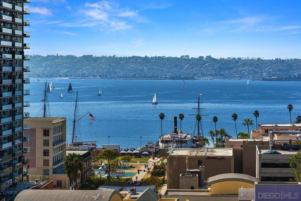 Ideally positioned in the coveted northwest corner of the La Vita residences, this beautifully appointed 2-bedroom, 2-bath home captures sweeping bay and city views in one of Downtown San Diego’s most cherished neighborhoods. Spanning approximately 1,132 square feet, the residence showcases upgraded wood-grain ceramic tile flooring, an inviting fireplace, a desirable split-bedroom floor plan, and a private balcony offering a front-row seat to the energy and charm of Little Italy. The thoughtfully designed kitchen features granite countertops, a custom tile backsplash, recessed and under-cabinet lighting, and a convenient breakfast bar—perfect for both everyday living and entertaining. Both bedrooms offer generous walk-in closets, complemented by central heating and air conditioning, ceiling fans, refined baseboards, and the convenience of two side-by-side parking spaces. Offered furnished or unfurnished, La Vita residents enjoy an exceptional collection of resort-style amenities, including a pool and spa, fitness center, lushly landscaped courtyards with fountains, barbecue areas, sun deck, and a recreation room with pool table. Just moments from acclaimed dining, boutique shopping, the waterfront, Seaport Village, the Gaslamp Quarter, and Petco Park, this is urban living at its finest—an exceptional opportunity to experience the vibrant Little Italy lifestyle.