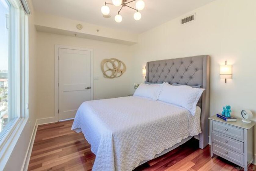 "WowCome" to Unit 1908 at 300 W Beech Street, a sophisticated residence in the heart of San Diego’s vibrant Little Italy neighborhood. Perched on the 19th floor, this stunning condominium offers sweeping city views, abundant natural light, and a modern urban lifestyle just steps from some of San Diego’s best dining, cafes, and waterfront attractions. This beautifully appointed residence features an open-concept living space designed for both comfort and entertaining. Floor-to-ceiling windows frame breathtaking views while filling the home with natural light. The spacious living and dining areas flow seamlessly into a well-equipped kitchen with sleek cabinetry, granite countertops, and stainless steel appliances—perfect for both everyday living and hosting guests. The primary suite offers a peaceful retreat high above the city, complete with generous closet space and a well-appointed bathroom. Step onto your private balcony to enjoy morning coffee with sunrise views or unwind in the evening while taking in the sparkling city lights. Residents enjoy resort-style amenities including a fitness center, pool and spa, concierge service, 2 secure parking, and beautifully maintained common areas. Located just minutes from the San Diego waterfront, Little Italy’s farmers market, world-class restaurants, and downtown attractions, this home offers the ultimate combination of luxury, convenience, and lifestyle. Experience elevated downtown living at its finest in Unit 1908 at 300 W Beech Street. 300 W Beech Street, Unit 1908 – San Diego, CA This residence features a recently renovated kitchen with extensive upgrades and improvements, completed to enhance functionality, modern design, and code compliance. The following work was professionally completed: Kitchen Renovation Highlights Complete Kitchen Demolition Existing kitchen cabinets, pantry, and countertops were fully removed. Appliances including hood, refrigerator, and stove were disconnected and removed during renovation. Plumbing fixtures including sink, faucet, and garbage disposal were disconnected. Work areas were fully protected during construction and all debris was professionally removed. Plumbing & Electrical Upgrades Water lines upgraded for the new sink configuration. New dedicated water line installed for the refrigerator. New P-trap installed for the sink. New GFCI electrical outlets installed to meet current code requirements. Installation of new recessed lighting in the kitchen for improved illumination. Removal of one existing light fixture to create a cleaner lighting layout. Gas line connected for the new stove. Drywall, Texture & Paint All drywall areas impacted by demolition were repaired. New drywall areas were taped, mudded, and finished. Texture applied to match the existing interior finish. Walls were sanded and prepared for finishing. One coat of primer and two coats of paint applied to the renovated areas (color selected by owner). New Kitchen Installation Installation of new semi-custom kitchen cabinetry based on the approved design layout. Plywood base support installed beneath cabinetry for durability. New kitchen sink installed with under-mount configuration. Installation of new prefab quartz countertops. Custom fabrication for sink, faucet, and air-gap cutouts. Installation of a new tile backsplash. Full plumbing reconnection including sink, faucet, garbage disposal, and dishwasher. Installation of kitchen appliances. All protective coverings were removed upon completion and the work area was cleaned and cleared of construction materials. Result: A modernized, updated kitchen with improved lighting, upgraded plumbing and electrical systems, and contemporary finishes including quartz countertops, new cabinetry, and tile backsplash.