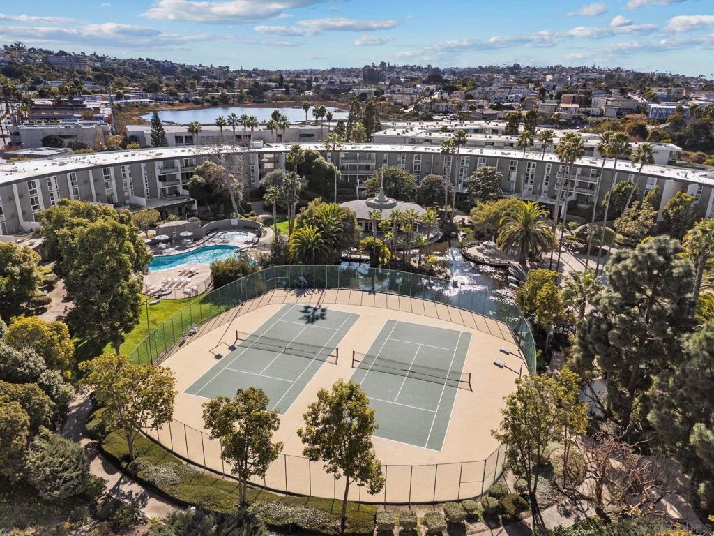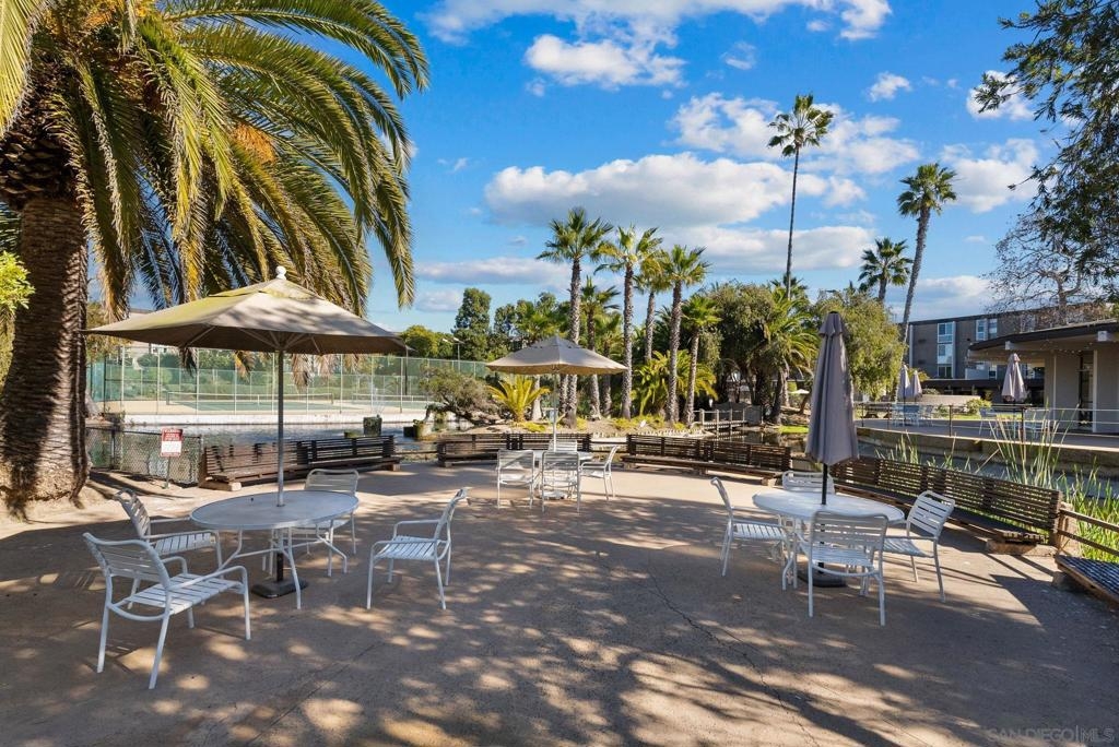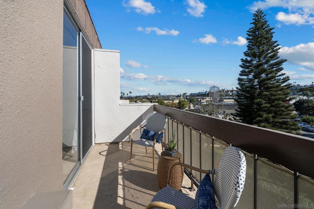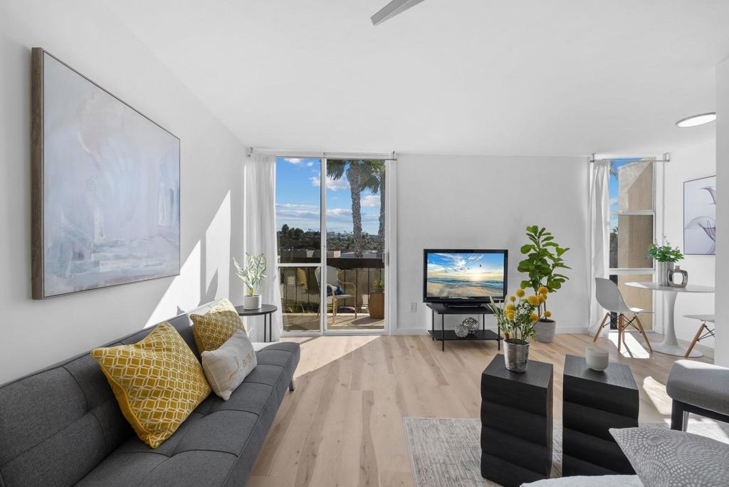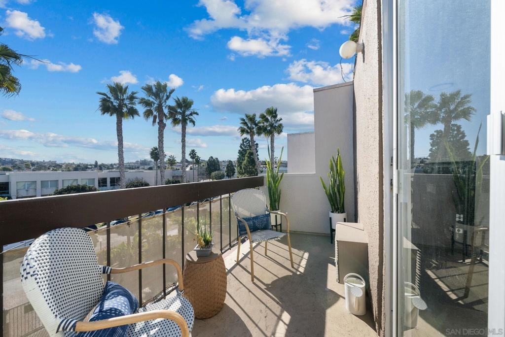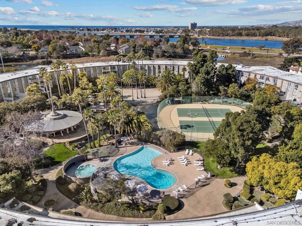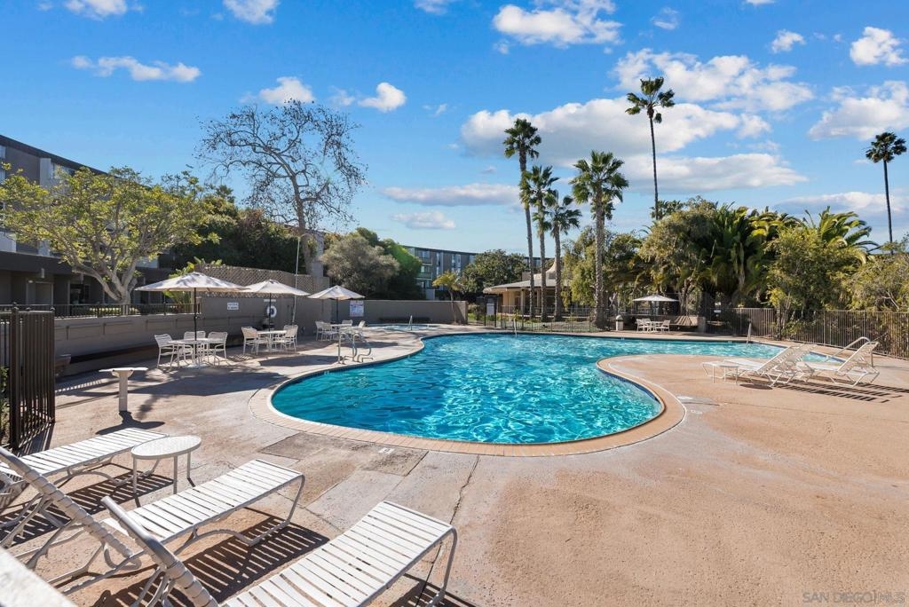 Beautifully updated TOP FLOOR modern condo in the heart of San Diego's highly desirable and coastal Point Loma! This spacious studio is an end unit with only one shared wall! Gorgeous finishes and tons of natural light with large balcony off living room to enjoy lovely views, breakfast area, large bathroom, rare IN-UNIT laundry, perfect for comfort and style. Features include newer: paint, LVP flooring, appliances, tiled shower with frameless glass panel, sink, faucet, mirrors, light fixtures, electrical panel, modern closet with storage. Complete with a parking space, storage locker, incredible amenities with a sparkling pool, spa, fitness center, tennis courts, sand volleyball court, BBQ areas and more—all within a gated complex that exudes resort vibes year-round. Minutes from Mission Bay, beaches, San Diego’s finest dining and shopping, this home offers the perfect balance of convenience and tranquility. This isn't just a condo, it's a lifestyle in one of San Diego’s premier communities!