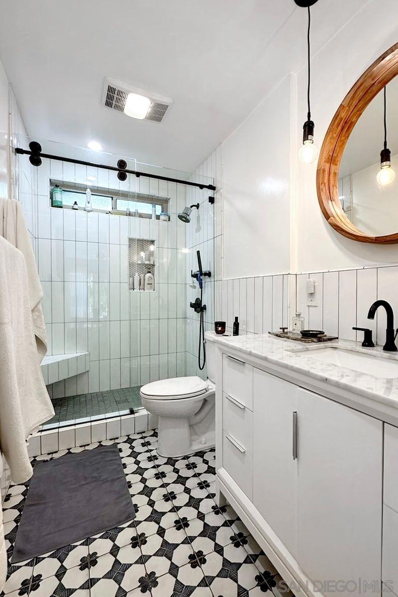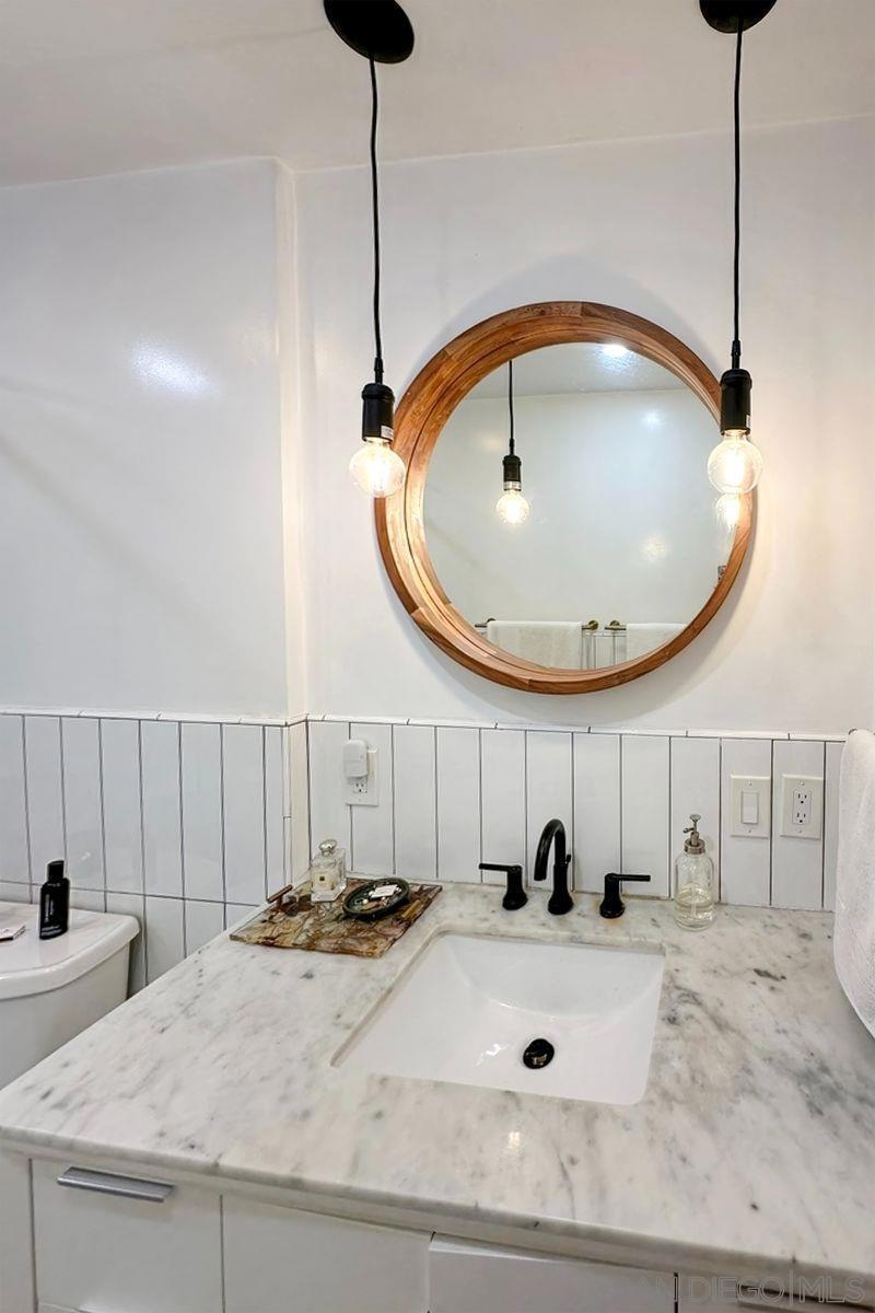 You will love all the upgrades that this fully renovated condo has to offer in Mission Hills! This home is move-in ready and features luxury vinyl flooring throughout a majority of the property. The Kitchen features quartz countertops with marble countertops in the bathroom. Home includes stainless steel appliances, dual pane soundproof windows, a new dual washer/dryer (in unit!), A/C and ceiling fans! Soak in the view of the bay from the balcony or dining room and enjoy the vibe of your oversized master bedroom with a spacious walk-in closet. This condo is in a tight knit, 15 unit complex that is majority owner occupied. Neighbors have a pride of ownership and the complex offers a swimming pool, bike storage room, 1 private parking spot, an electronic gate to parking, large private storage area above your parking space and a dog station. Best of all, this condo is located in the central & desirable neighborhood of Mission Hills! It is just a few minutes away from some of San Diego's most notable areas, such as Balboa Park, Little Italy, Downtown, San Diego’s International Airport, Hillcrest, Restaurant Row, Point Loma, and more! So many great upgrades plus building amenities and a terrific location. Super fun community, too. Great space for a couple, someone wanting high walkability and a small close-knit building with only 15 units. Lots of street parking plus the secure, assigned garage space. Very easy access to the freeways, to cool pubs (Shakespeare's and Lucha Libre for example) and stores and also a quick uber to the airport. Close to Hillcrest, Old Town, USD, Chic, urban, and very comfortable. Definitely a must see!