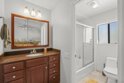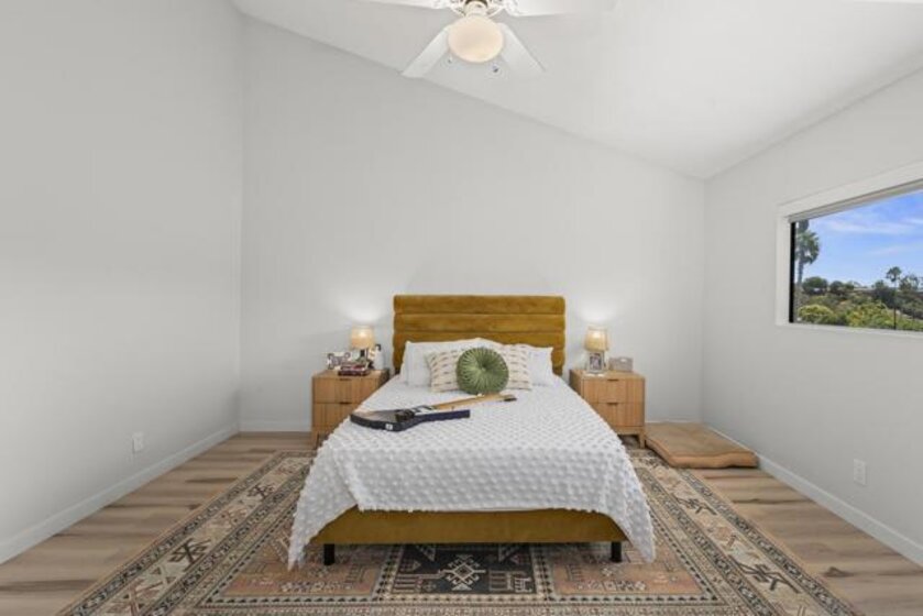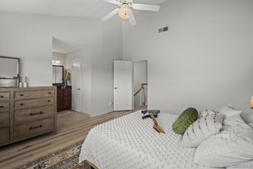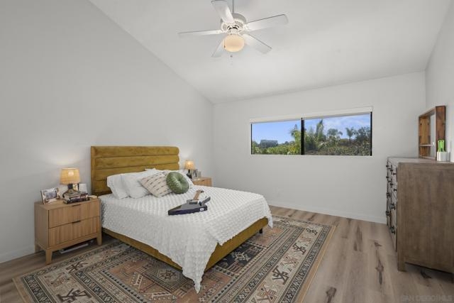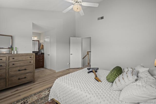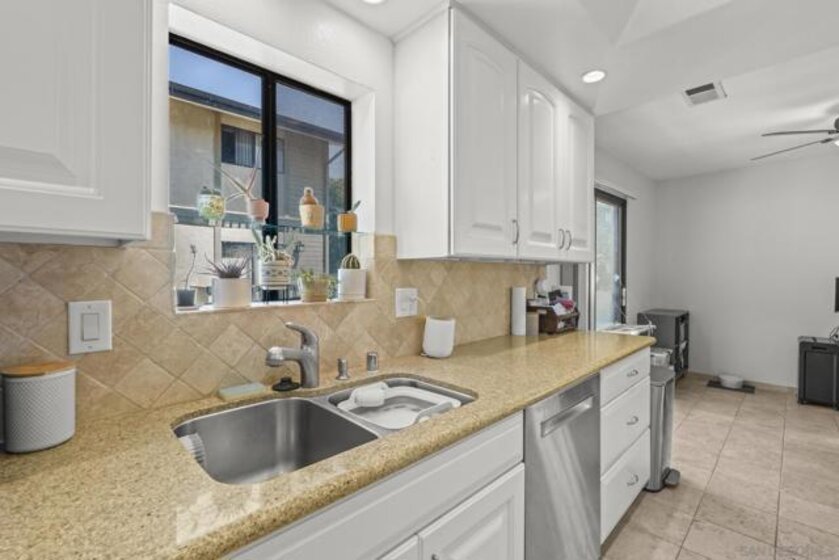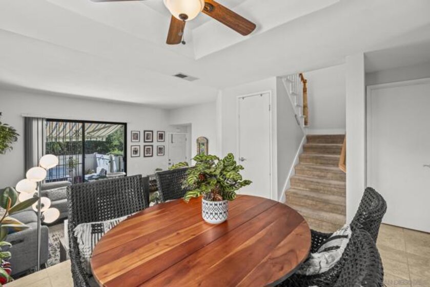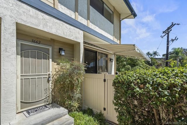 Welcome home to an idyllic setting at the end of a cul-de-sac. This tucked away secret is situated in the heart of Linda Vista and offers an ideal Centre city living experience. Located just minutes to Mission Valley, Clairemont, and Kearny Mesa shopping, restaurants and amenities, this location is convenience defined! The home is an elegant townhome boasting flair, sensibility and exceptional function! As arguably the premier end unit of the entire community, the uninhibited western exposure provides wonderful open treetop views, and a sun-drenched experience for the entire home. The living room flows onto a wonderful front terrace retreat, which screams entertainment or complete detachment, you pick. Generous sized living and dining rooms give you plenty of space to spread out and live comfortably, complete with fireplace and powder room. *See Supplement for Details* The galley kitchen is complete with a great space for home office, as it’s currently utilized, or a cute breakfast nook with back balcony. Upstairs both bedrooms have had new Coretec LVP installed, plus the window treatments have been upgraded with Veneta window blinds. Each room is spacious, and it truly is a dual primary bedroom setup with en-suites for each. They both feature soaring ceilings which create a much larger feel. Not to be missed is a very functional laundry room that boasts side-by-side laundry set up. On the lowest level is what can only be termed a grand garage for this kind of property type and price. It is fixed with extensive wall mounted tall storage cabinetry. But that’s not all! This unit has an additional bonus room that you almost NEVER find anywhere. Although currently used for storage, this could easily be repurposed for an office, workshop or craft room. Please note it is not part of the square footage listed and is a big bonus! The community of Hidden Canyon truly is hidden. It’s just down from Mesa College and unless you knew about it from a friend, chances are you would never know it existed. The complex is unique in that it features well-spaced buildings, has an amazing green space between the buildings and offers a beautiful pool and spa facility. This PUD community truly stands out in front… but still hidden…