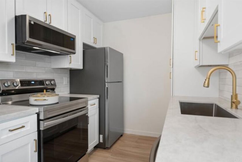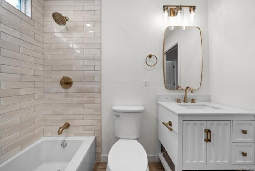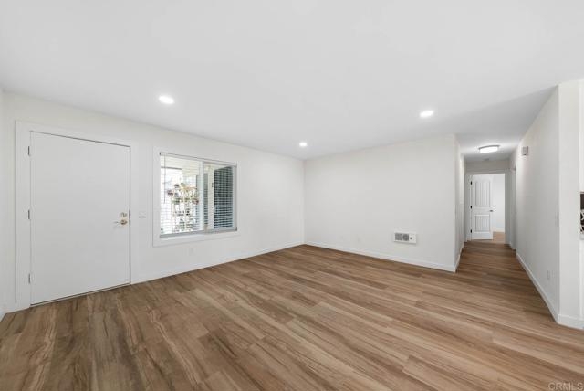Stunning Fully Renovated Condo in City Heights! Welcome to this beautifully upgraded 2 bed, 1 bath ground-level unit in a gated complex in the heart of San Diego. This home features a completely remodeled kitchen with sleek quartz countertops, white shaker cabinets, subway tile backsplash, stainless steel appliances, and modern brass hardware. The spacious living room is flooded with natural light and showcases durable wood-look flooring that flows throughout the home. The stylishly remodeled bathroom boasts a tiled shower surround with built-in niche, dual-pane frosted windows for privacy, a modern vanity with marble top, and elegant gold fixtures. Additional upgrades include recessed lighting, dual-pane windows, and contemporary finishes throughout. This turn-key unit is perfect for first-time buyers or investors looking for low-maintenance living. Located just minutes from North Park, downtown, and freeway access — this one won’t last!