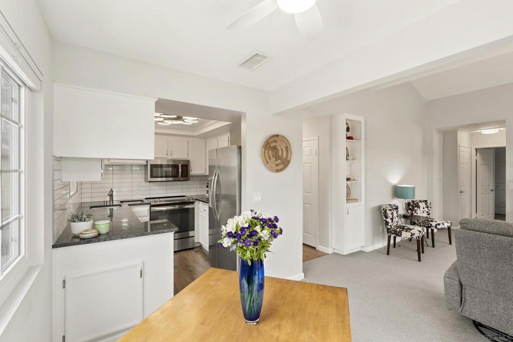 Private garage + driveway parking—check. Central heat & A/C—check. Walkable to everything—check. In-unit full-size W/D—check. Big views + big sunshine—check. End unit w/only one shared wall—check. Super clean and move-in ready—check. Dishwasher + fireplace—check and check. Welcome to your super-bright condo, with windows on three sides for cross-breezes, perched to capture spectacular easterly city and mountain views. Inside, soaring vaulted ceilings, dual-pane windows (on three sides!), and natural sunlight set the vibe. The modern kitchen is tastefully updated, the bath is fully remodeled, and the wood-burning fireplace brings cozy nights on demand. Step out to your private balcony for morning coffee or sunset glow. Practical perks? A private garage plus a driveway spot (no circling the block), central A/C, and full-size stacking laundry right where you want it—inside your home. Like being organized? There’s an extra-large custom bedroom closet (bi-fold wood doors with a flexible Elfa system). Location is the trifecta: moments to University Heights, Hillcrest, and North Park. With a 94 Walk Score™ (“Walker’s Paradise”), daily errands, cafés, gyms, groceries, and nightlife are a short stroll or bike ride away. Prefer wheels? You’ve got quick freeway access and nearby public transit. Meticulously maintained and truly move-in ready—just bring your boxes and start living. This condo has all you've been looking for in a 1 bedroom: Location, SUPER-clean, modern, superb walkability--explore Hillcrest, University Heights and North Park easily from your doorstep. Within a short distance you'll find the library, grocery/markets, popular eateries, services, shops, farmers market, post office, DMV, Trolley Barn Park, the new Hillcrest Pride Promenade (coming soon). Walk Score™ gives bikeability a score of 75! Take your bike just about anywhere; Normal Heights, Balboa Park & Zoo, Mission Hills, Bankers Hill and beyond.