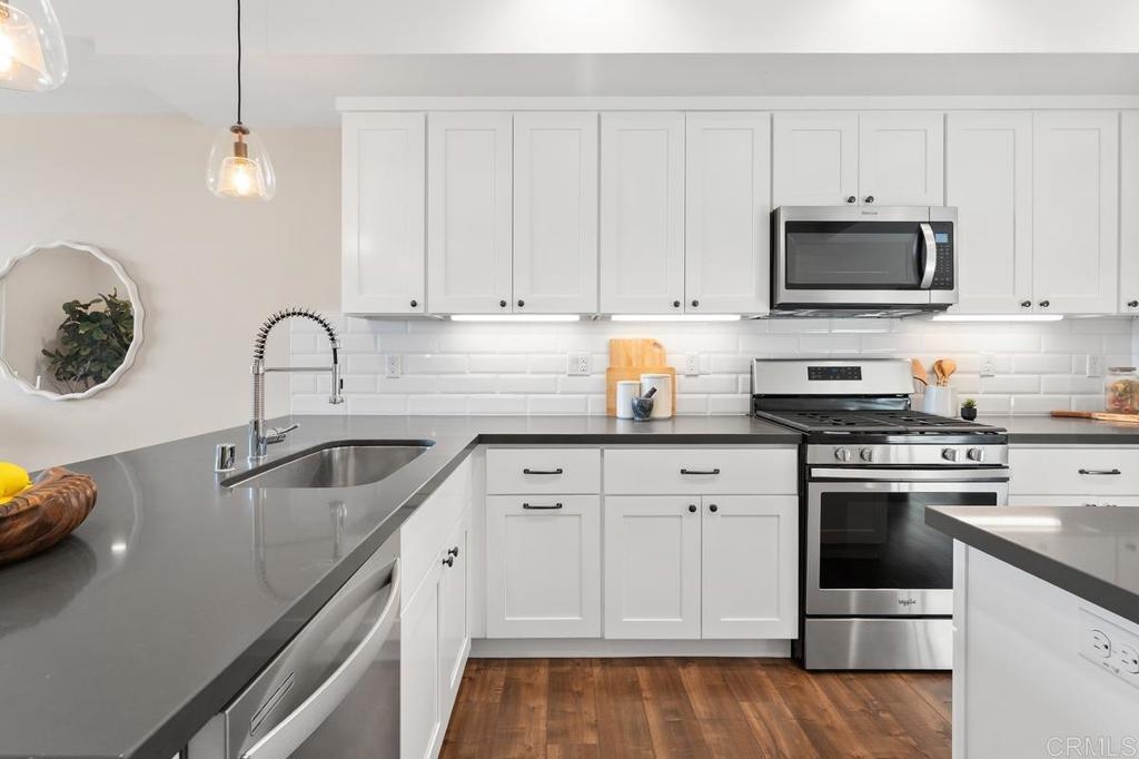 Perfectly positioned in one of Point Loma’s most desirable coastal corridors—with effortless access to the ocean, major freeways, and downtown San Diego—this modern 2-bedroom, 2.5-bath townhome delivers the ideal blend of style, comfort, and convenience. Offering 1,554 square feet of thoughtfully designed living space, the home is just minutes from the beach and all the vibrant amenities of Ocean Beach and Point Loma. The entry level features a welcoming family room, a spacious bedroom, a full bathroom, and a dedicated laundry area—an ideal layout for guests or a private home office. The second floor is the heart of the home, showcasing an open concept living area and an expansive kitchen equipped with stainless steel appliances, quartz countertops, and a large kitchen island. Retreat to the third-floor primary suite, where abundant natural light, a generous walk-in closet, and an ensuite bathroom with dual vanities await. Step out onto the large private deck and enjoy sweeping views. Additional features include central AC, two covered garage spaces wired for EV charging, and a private storage unit. Built in 2019, Upper Voltaire is a gated community of 28 residences with exceptional walkability to restaurants, coffee shops, and nightlife. Close to iconic San Diego destinations such as Sunset Cliffs and Liberty Station—and only minutes to downtown—4100 Voltaire Street offers a rare opportunity to enjoy coastal living without compromise.