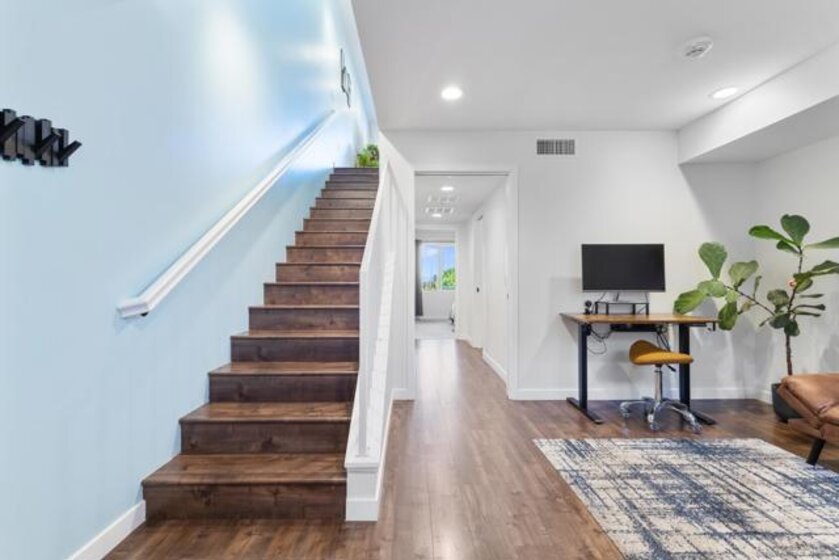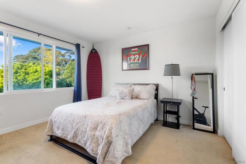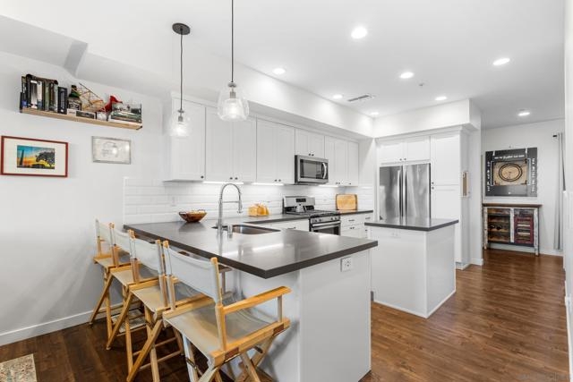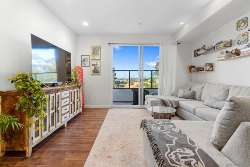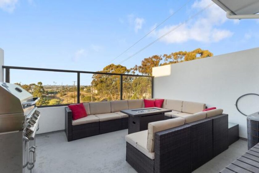 Welcome to modern coastal living in Ocean Beach! This contemporary 2 bed, 2.5 bath townhome offers 1,554 sq. ft. of thoughtfully designed space in a secure gated community just minutes from the sand. The flexible split-level floor plan features a welcoming foyer and spacious den—ideal for a home office, gym, or cozy media space—along with a guest bedroom and full bath on the entry level. Upstairs, an open-concept living area showcases soaring ceilings, abundant natural light, and a sleek modern kitchen with quartz countertops and stainless steel appliances—perfect for entertaining or relaxing after a day at the beach. The entire top floor is a private primary suite, complete with an oversized shower, dual vanity, and large walk-in closet. Best of all, an exclusive deck where you can unwind, soak up ocean breezes, or catch the SeaWorld fireworks show from the comfort of home. Additional highlights include full-size in-unit laundry, central A/C, a private storage room, and two assigned garage spaces, both equipped with EV power sources. HOA fees even include high-speed internet! Built in 2019 and ideally located near shopping, dining, dog parks, and all your favorite Ocean Beach hotspots, this home truly delivers the best in modern coastal style, comfort, and convenience.