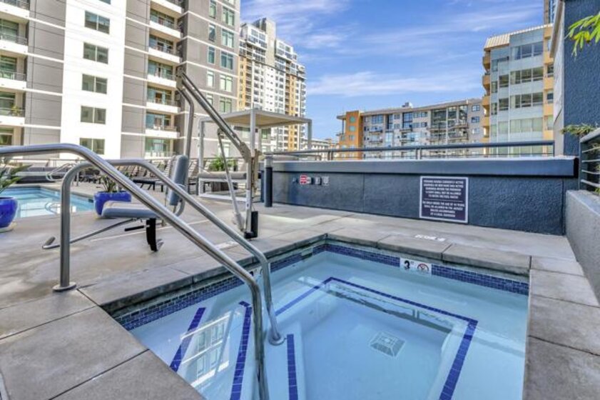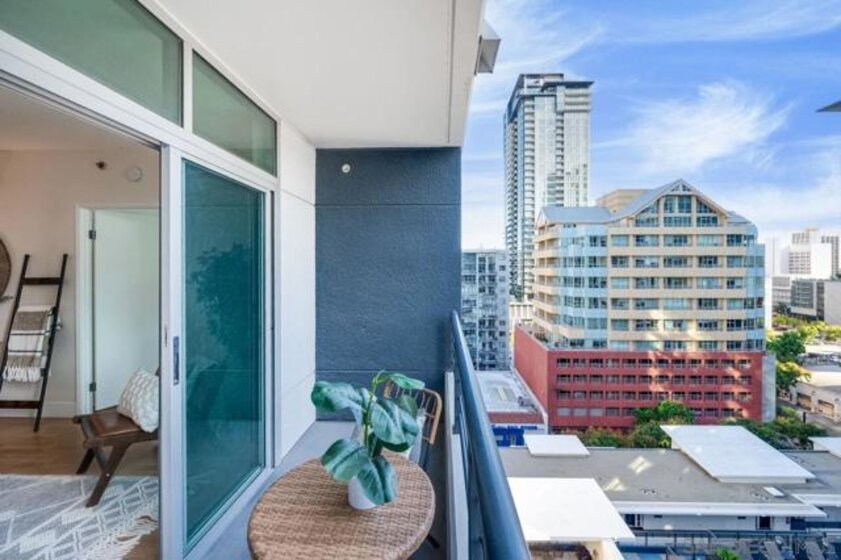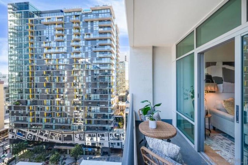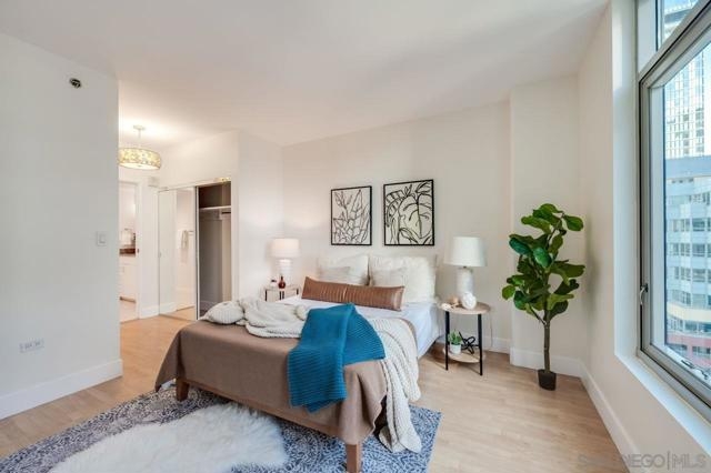 Welcome to your urban sanctuary at 425 West Beech Street, Unit 1353, nestled in the coveted Acqua Vista community in Little Italy. This sophisticated 1-bedroom, 1-bathroom residence offers 661 square feet of smartly designed living space, complete with stunning city views from a private higher-floor balcony. The modern kitchen features stainless steel appliances, dishwasher, microwave and an attractive backsplash. The spacious bedroom provides tranquility, while floor-to-ceiling windows fill the home with natural light. Additional comforts include an in-unit washer/dryer and central air conditioning. Acqua Vista was recently renovated and offers premium, resort-style amenities such as valet parking for one car, an 8th-floor rooftop pool and spa, a well-equipped fitness center, fire tables, and a communal BBQ area. Residents also enjoy EV charging stations, Amazon lockers, full-time security, a 24-hour concierge, and an on-site HOA manager. Experience the vibrant lifestyle of Little Italy—just steps from the renowned Little Italy Farmers Market, the scenic waterfront, and a variety of award-winning cafés and restaurants. The exceptional location and amenities make this home ideal as a primary residence, a stylish second home, or a smart investment opportunity.
