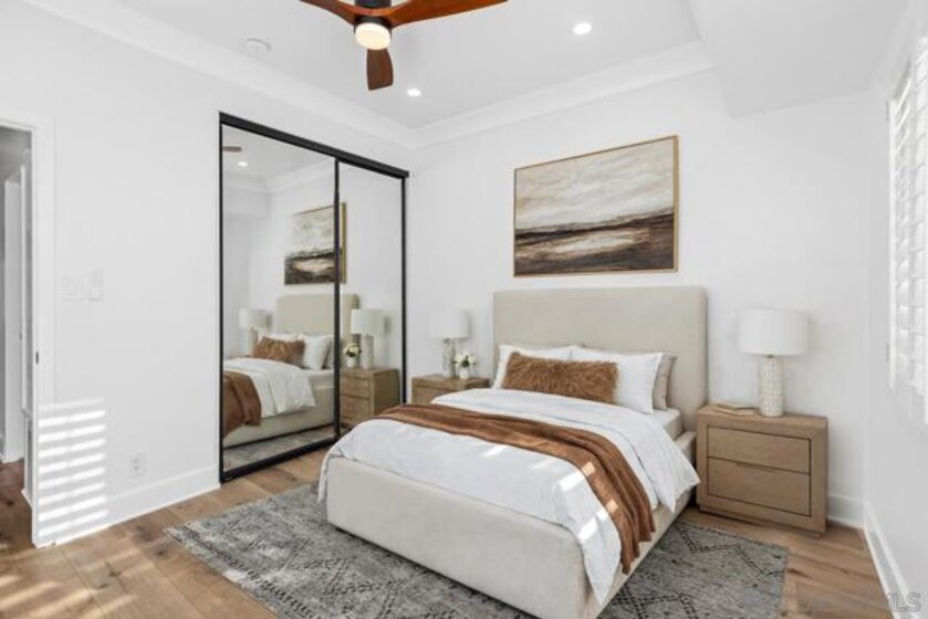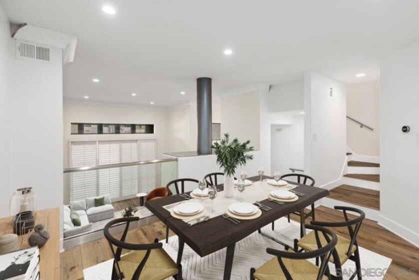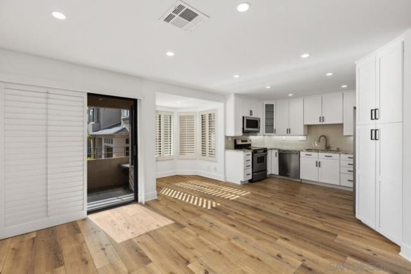 Experience refined luxury in this beautifully renovated 3-bedroom, 3-bath townhouse filled with natural light. Morning sunshine brightens the living room and front bedroom, while afternoon light enhances the family room and kitchen. Enjoy refreshing cross-breezes on warm days and added privacy with serene greenbelt views. Just steps from the world-class UTC Mall, this home offers both convenience and tranquility. This stunning multi-level residence features an open, airy floor plan designed for comfort and privacy. The main living areas span the first two levels, while all bedrooms are privately located upstairs. Soaring ceilings with elegant crown molding, designer plank flooring, custom LED lighting, and fresh neutral paint create a sophisticated, modern ambiance. The gourmet kitchen is fully upgraded with granite countertops and premium finishes. The spacious living room boasts a dramatic two-story ceiling and a cozy fireplace, complemented by large windows that flood the home with natural light. Enjoy seamless indoor-outdoor living with a private balcony and a large patio overlooking the greenbelt—perfect for morning coffee, evening wine, or entertaining. Luxurious bathrooms feature marble finishes with contemporary gold accents, and all bedrooms offer high ceilings with designer ceiling fans. Additional features include a two-car garage with a Bosch washer and dryer. Residents enjoy resort-style amenities such as a heated pool and spa, clubhouse, ample guest parking, EV charging stations, and central forced heating and air conditioning.