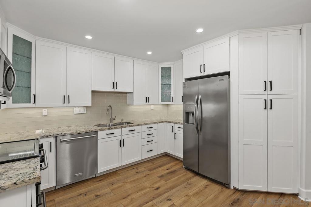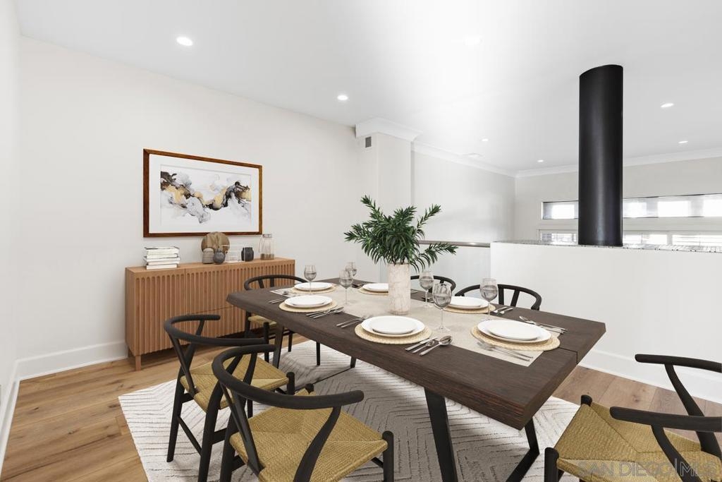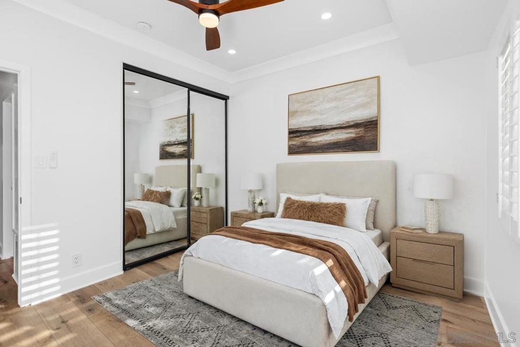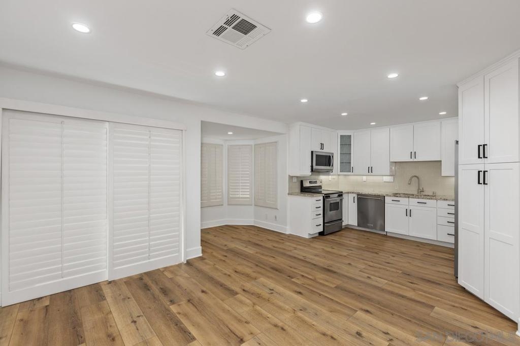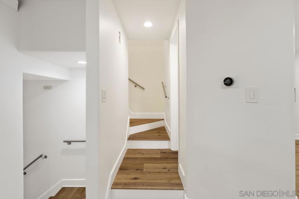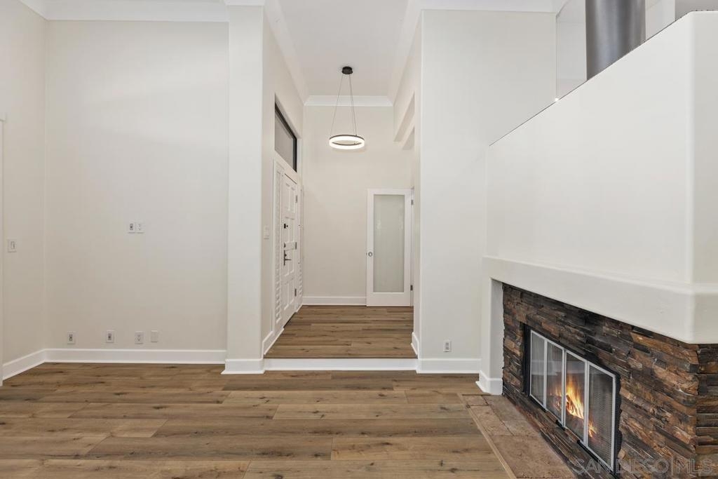 Experience refined living in this beautifully renovated 3-bedroom, 3-bathroom townhouse, perfectly situated in the University Town Square UTC community—just steps from the world-class UTC Mall.This stunning multi-level home features an open and airy floor plan designed for comfort and privacy. The main living areas span the first two levels, while all bedrooms are privately located upstairs. Soaring ceilings with elegant crown moldings, designer plank flooring, and custom LED lighting create a sophisticated ambiance throughout.The gourmet kitchen is fully upgraded with granite countertops and premium finishes. The spacious living room boasts a dramatic two-story ceiling and a cozy fireplace, while large windows fill the home with natural light. Freshly painted in neutral tones, the interiors exude modern elegance. Enjoy seamless indoor-outdoor living with a private balcony and a large patio overlooking a serene greenbelt—perfect for morning coffee, evening wine, or entertaining guests. The luxurious bathrooms showcase high-end marble finishes with contemporary gold accents, and all bedrooms offer high ceilings with designer ceiling fans. Additional features include a two-car garage equipped with a Bosch washer and dryer.Residents enjoy resort-style amenities, including a heated pool and spa, clubhouse for entertaining, ample guest parking, and newly added EV charging stations.