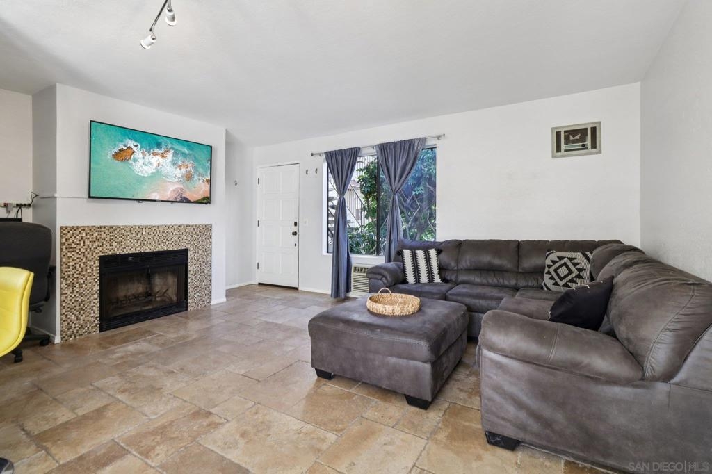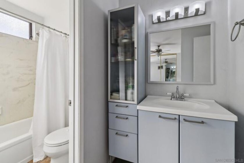 Light, bright, and thoughtfully designed, this 2-bedroom, 2-bath lower-level residence offers 834 square feet of comfortable open-concept living just moments from Adams Avenue and one minute from the I-15. Travertine tile floors span the living areas, kitchen, and baths, with carpeting in the bedrooms. Recent updates include fresh interior paint, newer kitchen cabinetry, and dishwasher. Enjoy indoor-outdoor living with a south-facing private patio and extended side space ideal for grilling and lounging. A convenient exterior laundry closet includes a washer and dryer that was replaced in the last few years. Storage is plentiful with large closets, multiple linen cabinets, and built-in storage in the deep shared garage. Parking includes a garage space, the driveway space in front, and an additional side parking space. Ideally located within walking distance to Kensington and Normal Heights shops, the library, Vons, cafés, Ward Canyon Park with two dog parks, and more. Clean, move-in ready, and perfectly positioned for a walkable, commuter-friendly, and urban lifestyle.