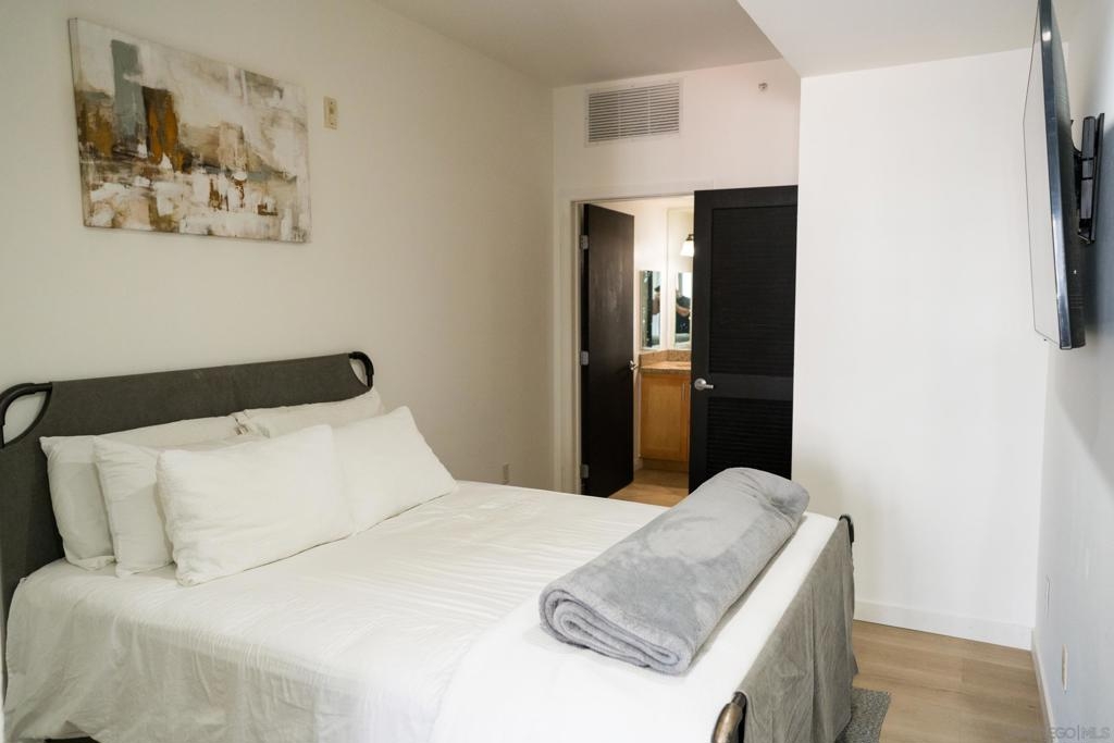 Modern downtown living at Gaslamp City Square (5th & J). This upgraded residence features luxury vinyl plank (LVP) flooring, granite countertops, stainless steel appliances, and in-unit laundry. Located on the quiet side of the building, large windows offer peaceful courtyard views and abundant natural light. Enjoy unbeatable walkability just steps from Petco Park, Seaport Village, dining, nightlife, shopping, and entertainment. Community amenities include a pool, spa, BBQ areas, fitness center, 24-hour security, secure underground parking, low HOA fees, and water included. A perfect blend of style, comfort, and convenience in one of Downtown San Diego’s most desirable locations.