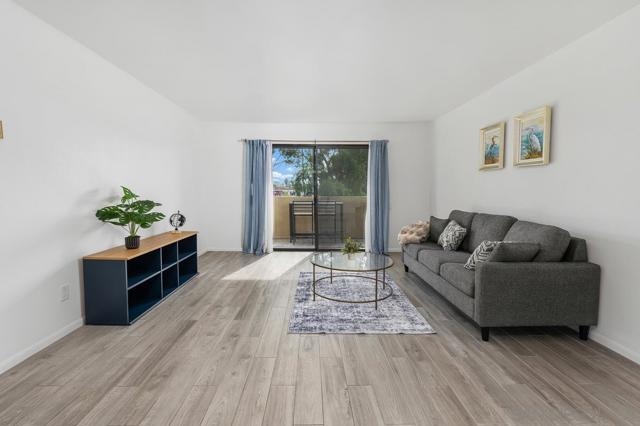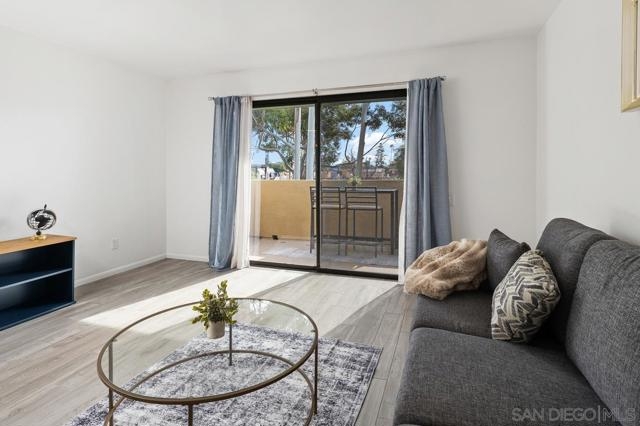 This recently remodeled 2-bedroom, 1-bathroom condo at 4647 Pico St, Unit 205 is located in the tranquil Pacific Woodlands community, offering a perfect blend of comfort and convenience. The modern kitchen is equipped with stainless steel appliances and sleek countertops, while wood-look tile floors and recessed lighting create an elegant atmosphere throughout. The living room opens to a large private patio with a beautiful view of the eucalyptus trees along Rose Creek, providing a peaceful outdoor extension of your living space. The condo features a fully updated bathroom with modern fixtures and full-sized in-unit laundry for added convenience. You’ll also enjoy two assigned parking spaces, including one covered space with extra storage, plus gated parking for enhanced security. Ideally situated, this home offers easy access to Kate Sessions Park, nearby biking trails, and the Capehart Dog Park just across the street. It’s also just 2 miles from the ocean, moments from Pacific Beach, Crystal Pier, and Mission Bay, and surrounded by trendy cafes, restaurants, and boutique shops. Commuting is effortless with quick access to the 5 North and South, making trips to North County or UTC a breeze. Community amenities include a sparkling pool, guest parking, and gated entry. This move-in-ready condo combines modern comfort with the best of coastal living, offering an ideal retreat in Pacific Beach.
