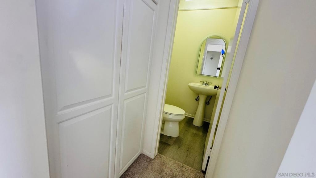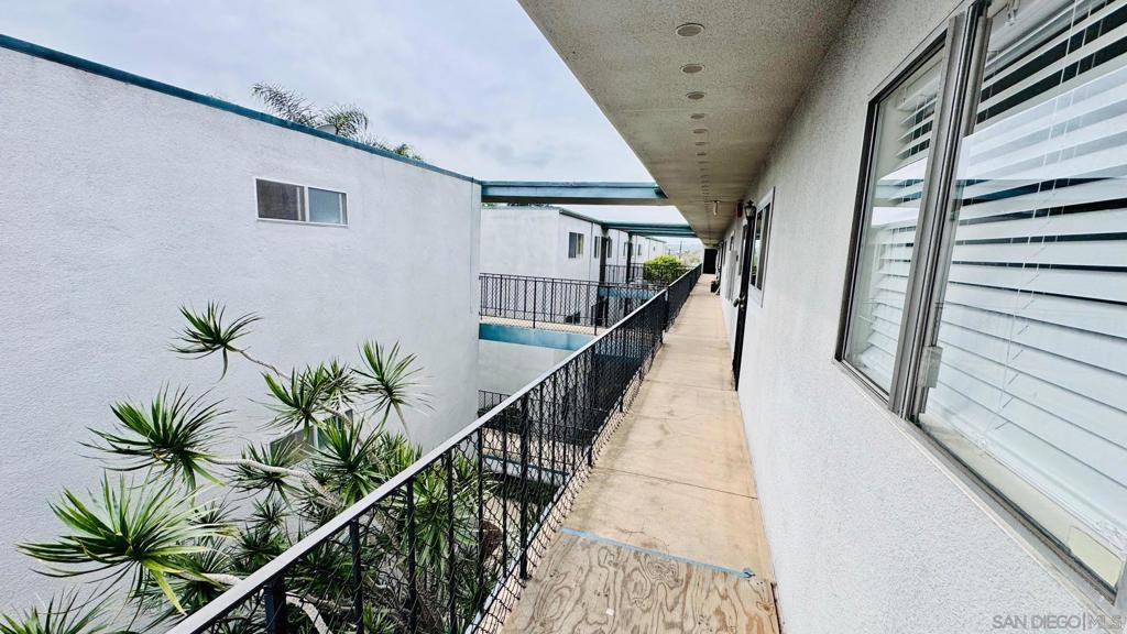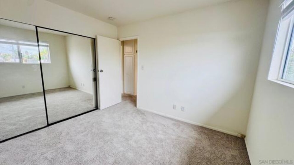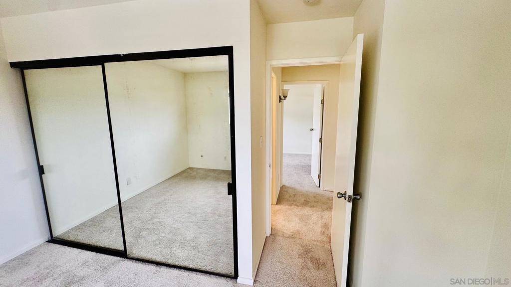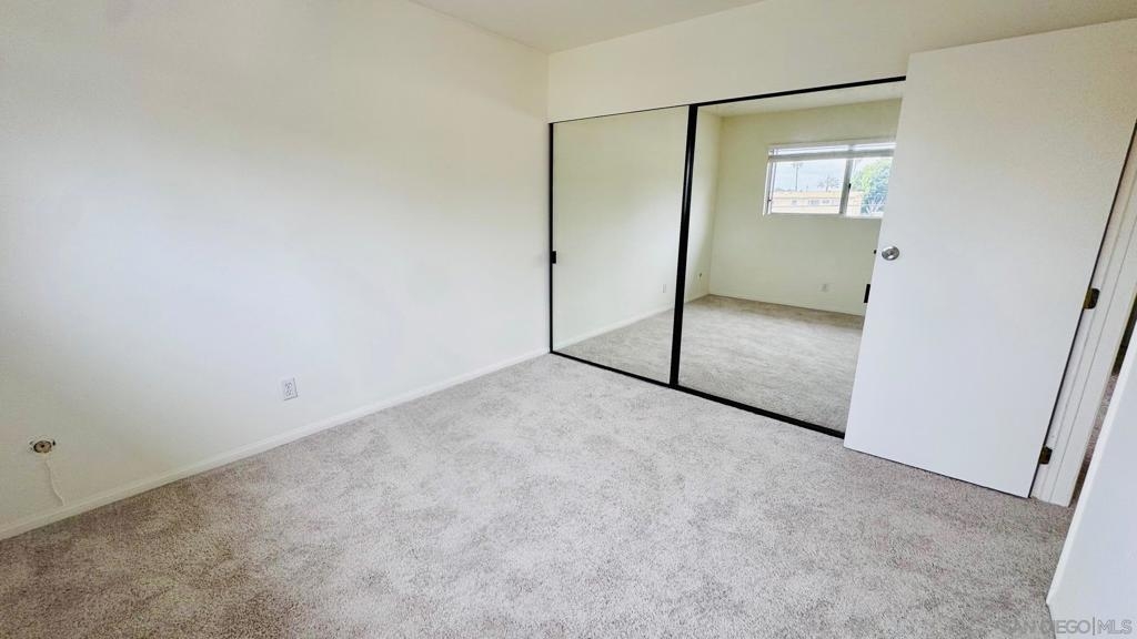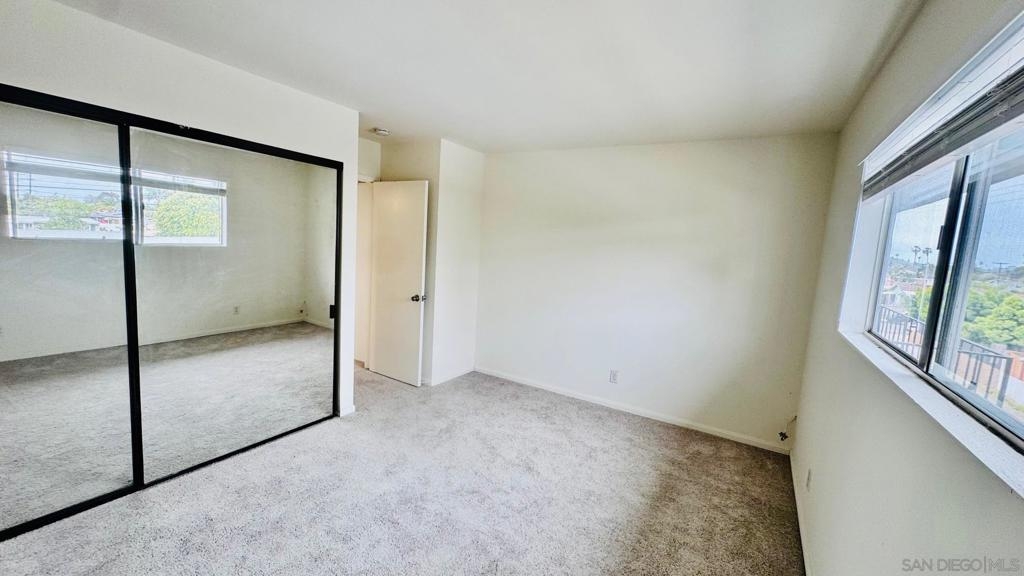 Move-in ready top-floor end unit with 2 bedrooms and 1.5 baths, featuring a private view balcony. This bright and open floor plan boasts luxury vinyl plank flooring, new carpeting, freshly painted interiors, a ceiling fan, mirrored closet doors, and upscale bathrooms. The main bathroom includes a tub/shower combo, and there's a convenient half bath off the living room for guests. Enjoy an assigned parking space with easy access to the unit via stairs or elevator. Low HOA dues cover water! Just one block from the popular Clairemont Town Square with its many shops and restaurants, and minutes from Mission Bay and La Jolla beaches. Perfect for an investor