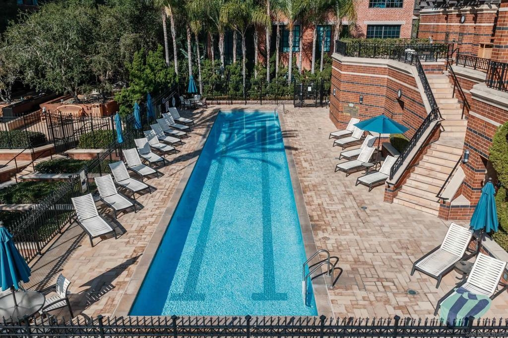 Discover elevated urban living at CityFront Terrace from this 2 BR, 2 BA residence in downtown San Diego’s sought-after Marina District. This beautifully updated residence offers peek bay views of the Coronado Bridge, and the city skyline, with a spacious balcony overlooking the community’s lush Urban Canyon gardens. Inside, the open layout blends style and function with a modernized kitchen featuring quartz countertops, stainless appliances, designer backsplash, and custom lighting. The primary suite offers a calm retreat with mirrored closet and a remodeled bath with deep jetted bath & dual quartz vanity. A versatile second bedroom includes a built-in Murphy bed and desk system, ideal for guests or a home office. Home comes with one large parking spot. CityFront Terrace is legendary in downtown San Diego for its high-end service and amenities with valet parking, 24 hour security/door service, 3,500 sq ft fitness center, two heated pools, clubroom, concierge services, and more! With the waterfront, Seaport Village, the Rady Shell, Little Italy, and the new Research and Development Districts just outside your door, this is downtown living at its best. Discover elevated urban living at CityFront Terrace from this 2 BR, 2 BA residence in downtown San Diego’s sought-after Marina District. This beautifully updated residence offers peek bay views of the Coronado Bridge, and the city skyline, with a spacious balcony overlooking the community’s lush Urban Canyon gardens. Inside, the open layout blends style and function with a modernized kitchen featuring quartz countertops, stainless appliances, designer backsplash, and custom lighting. The primary suite offers a calm retreat with mirrored closet and a remodeled bath with deep jetted bath & dual quartz vanity. A versatile second bedroom includes a built-in Murphy bed and desk system, ideal for guests or a home office. Home comes with one large parking spot. CityFront Terrace is legendary in downtown San Diego for its high-end service and amenities with valet parking, 24 hour security/door service, 3,500 sq ft fitness center, two heated pools, clubroom, concierge services, and more! With the waterfront, Seaport Village, the Rady Shell, Little Italy, and the new Research and Development Districts just outside your door, this is downtown living at its best.