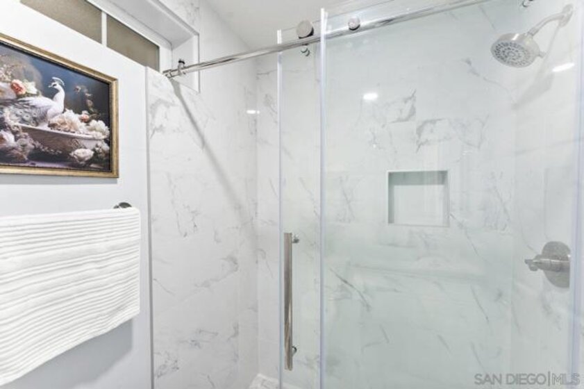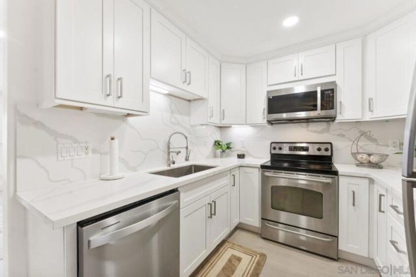 Less than a mile to SDSU! Don’t miss this beautifully remodeled 2-bedroom, 2-bath condo on the top floor of the gated community, Collwood Point. The condo was just renovated from top to bottom, featuring a brand-new kitchen with modern cabinetry and stainless-steel appliances, new bathrooms, new flooring, fresh paint, recessed lighting, and thoughtful touches throughout. The split-bedroom layout with ensuite baths makes this condo ideal for roommates, students, or anyone desiring extra privacy. Additional highlights include convenient in-unit laundry and wall-mounted air conditioning. Securely nestled in a gated community, this top-floor unit on the building’s west side boasts ample natural light and privacy. French doors in the living area open to the Juliet balcony, capturing the cool breeze. Collwood Point amenities include an elevator, pool, spa, BBQ area, and gated parking. The low monthly HOA fee covers water, trash, and sewer. The excellent location is close to the freeway, SDSU, shopping, dining, and public transportation. This condo presents an incredible opportunity for owners, student housing, or investors seeking the perfect balance of lifestyle, location, and affordability.