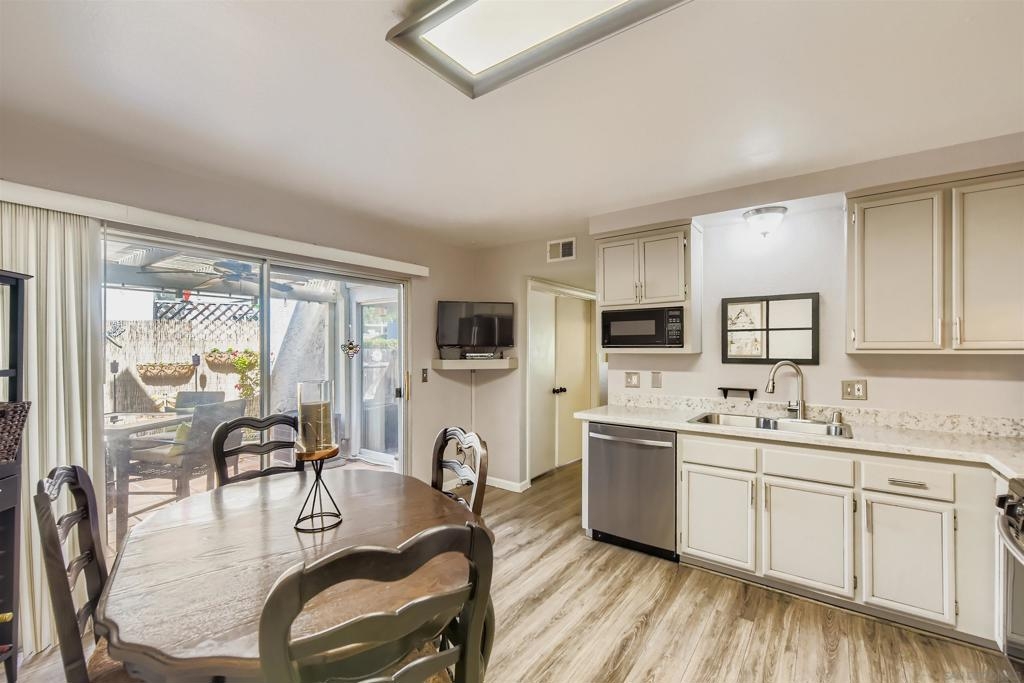 One of the best locations in the complex. Lovingly maintained and upgraded with fresh paint, newer laminated wood flooring throughout, including the stairs & custom Bali shades throughout the home. Remodeled kitchen with re-furbished kitchen cabinets, quartz counter tops, new dishwasher and stainless steel appliances. New furnace, all new angle stops & security screen door. Huge greenbelt in front and private patio in the back. Walk to the clubhouse, pool & spa area. Ample parking spaces and lovely View.