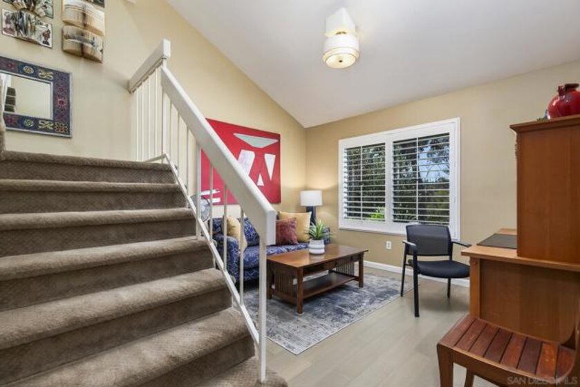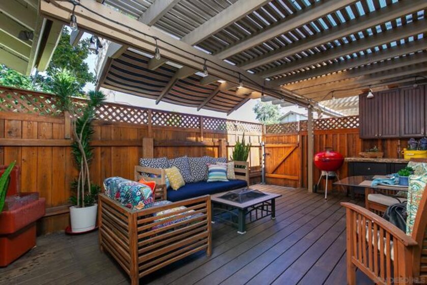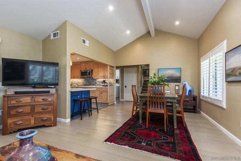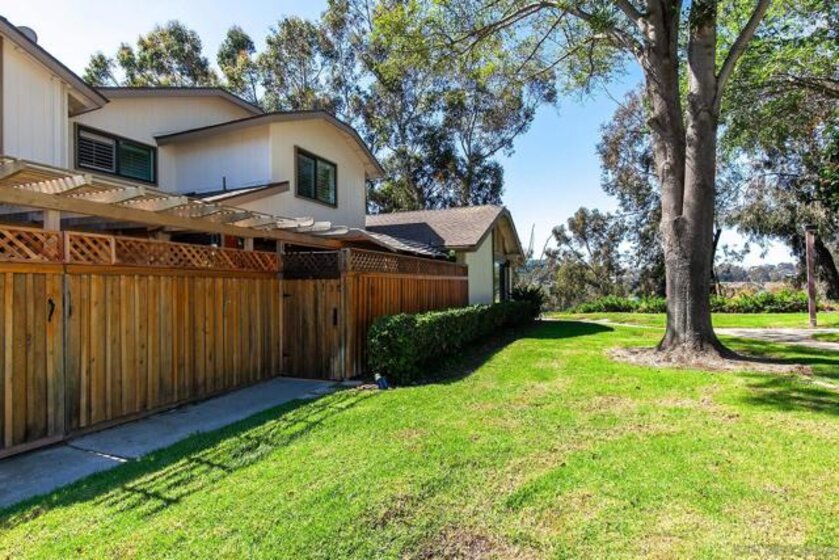 Conveniently located for commuters, this beautifully remodeled 3 bedroom, 2 bath end-unit townhome. Primary on the main level.Highly sought-after Villa Monterey community offers both accessibility & serenity. The surprisingly quiet interior benefits from upgraded dual-pane windows that minimize outside noise and create a peaceful retreat. Beautiful canyon views are right outside your windows. The custom patio deck is in a category of its own made from environmentally friendly engineered bamboo. The living area, kitchen, and primary bedroom each open through plantation shutters which are throughout the home. Step inside to discover bright, cheerful spaces ready for your personal touch. The open-concept floor plan, 36-inch wide doorway to the first-floor primary suite and bathroom, and spacious layout ensure easy accessibility throughout. The custom kitchen is a standout, featuring natural stone counters, updated lighting, and premium appliances: Viking gas cooktop, Dacor electric oven, Bosch dishwasher, travertine farm sink, built-in KitchenAid refrigerator, microwave, and pot filler — all framed by elegant Taj Mahal quartzite countertops. The primary suite offers vaulted ceilings, a skylight for stargazing, and a walk-in closet. Both bathrooms have been fully remodeled with marble, granite, subway tile, and custom glass doors. Additional highlights include a separate den or office, full-size laundry/utility room, newer interior doors, recessed lighting. A two-car detached garage provides abundant storage, and the community even offers on-site RV parking for $100 per month!