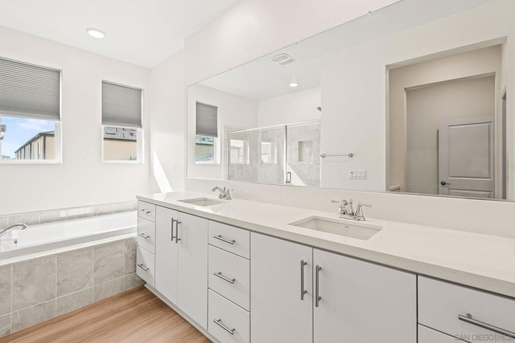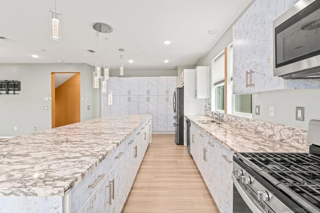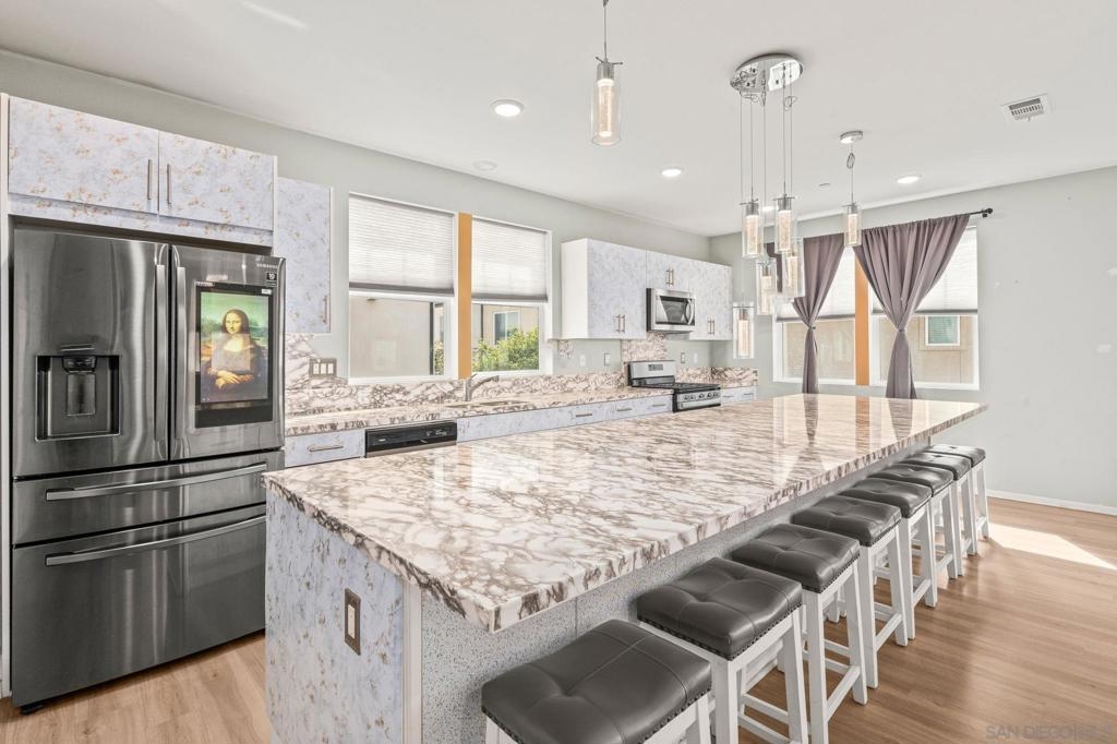 Wonderful value in San Diego! The last model match sold in July at $735,000. With some light cosmetic fixes, create automatic equity- a fresh coat of paint, new carpet and removing the peel and stick contact paper off the cabinets and countertops, you will have a beautiful new home in the Playa del Mar complex! This three story townhome was built in 2019 and features a two car garage with room for storage and like new epoxy floors. The main living space is large and open concept with a huge island, perfect for entertaining. Once you peel off the contact paper, you will find beautiful quartzite counter tops and white cabinets. On the top floor you will find 3 bedrooms, 2 full sized baths and a stacked laundry closet. The best part of this home are the incredible amenities within the gated complex- resort like pool, spa, outdoor showers, great gym space, locker rooms, BBQ area, club houses, play ground, park and so much more! This home is a must see!