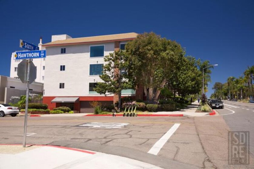 ***CORNER UNIT VIEWS INTO BALBOA PARK*** Very rare completely remodeled corner unit at Balboa Park. 2 bed 2 full bath condo with 2 car underground gated parking spots and extra storage. In unit laundry. Finishes include new windows, hard flooring, marble counters, butcher block kitchen island, custom white cabinetry, stainless steel appliances and new bathrooms. The condo is situated on Hawthorn and 6th Ave and the interior of the unit faces southeast directly into the park which allows for a nice greenbelt view but limits visibility inside the unit giving the interior a lot of light filled privacy. Parking is off street, gated, and in two separate assigned spots that are not tandem. Each parking space includes a small storage space for the condo. Walking distance to all of the amenities in Bankers Hill, close by downtown. Ideal location and rarely available.
