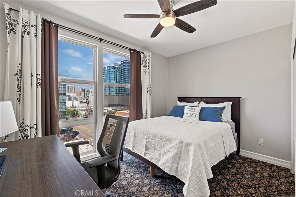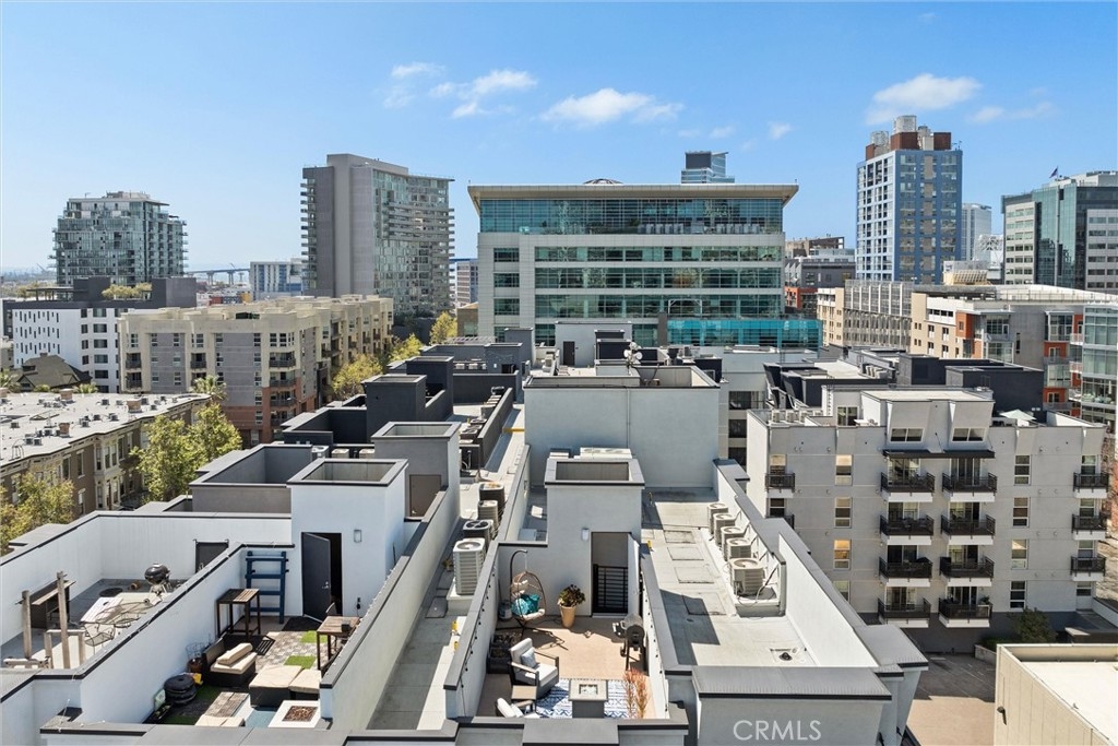 Welcome Home to this absolutely stunning penthouse condo in the prestigious Park Boulevard West. Whether you are enjoying your own private rooftop patio or your floor to ceiling windows with fantastic North and West-facing views, you’ll have an amazing experience living in America’s Finest City. This 2 bedroom, 2 bathroom condo is light and bright and has a great open floor plan. The updated kitchen is huge with ample custom cabinetry, granite countertops, and stainless steel appliances, and it opens to the spacious living and dining room with a wrap-around porch featuring beautiful downtown views. The primary bedroom is what dreams are made of with a walk in closet and an en-suite bathroom with a large soaking tub and double vanity. The secondary bedroom is a great size with a large closet, and the hallway full bathroom is spacious as well. And for the cherry on top of this already fabulous condo - a PRIVATE roof top deck, surrounded by the beautiful San Diego skyline. Enjoy your morning coffee in your little piece of tranquility amongst all the buzz of downtown. Other features of this property include in-unit laundry, 2 dedicated parking spaces, gleaming luxury vinyl flooring, central HVAC, and double pane windows. Park Boulevard West is a secure building with fantastic outdoor lounges and an in-ground spa. Conveniently located in the East Village and just steps from the bustling restaurants and shops of the Gaslamp Quarter, Petco Park, and the Pacific Ocean, this condo has it all!!!