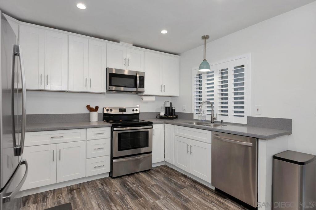 An opportunity to own a rare 4BD/2.5BA, 1,386 sqft townhouse ideally located in Clairemont. Beautifully remodeled several years ago, this home has been further enhanced by the current owners with a new HVAC system, plantation shutters, blackout curtains in the primary suite, and recessed lighting in the kitchen. Enjoy the private courtyard between the kitchen and spacious 2-car garage, perfect for entertaining or relaxing evenings. The community offers a pool, spa, and lush greenbelt throughout... see supplement. Conveniently situated near freeways, restaurants, and shopping for easy access to everything San Diego offers.