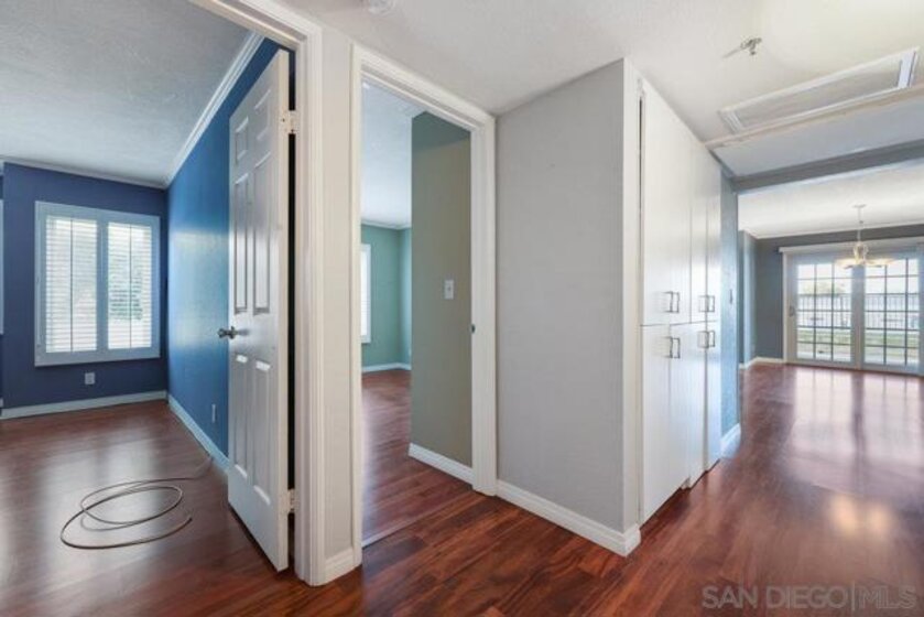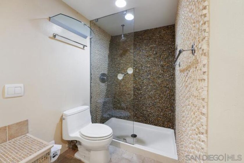 Don't miss this rare opportunity to own a private ground floor corner unit that is also the largest 3 bedroom floorplan at Presidio Place. This gorgeous home has abundant light from all of the windows, a beautiful open floorplan with upgraded kitchen - including a double oven and granite countertops! Pergola flooring throughout this home leads you through a dining room and large family room with sliding doors to a wrap around patio and even a lawn! In the family room you'll find a beautiful wet bar and fireplace. As you make your way down the hall you'll find updated hall bathroom and bedrooms with built in closet organizers. At the end of the hall you'll find the spectacular primary suite. Stunning wood cabinets and large walk in closet with built in organizers boast an abundance of storage. The updated primary bathroom make this a spa experience with a soaking tub and custom tiled separate walk-in shower. This home also comes with 2 assigned parking spots directly across from the elevator and is located steps across from the elevator on the 1st floor.....All of this in the heart of San Diego minutes away from dining, entertainment, shopping, beaches and even the airport. Presidio Place boasts 24/7 security with guard on-site, a heated pool you can use year-round and discount membership to state of the art gym at the YMCA (Did someone say Pickleball??). Also included in the HOA fee is your gas, water, trash, and sewage. This truly is a rare opportunity to live near everything but be in your own your quiet private oasis.
