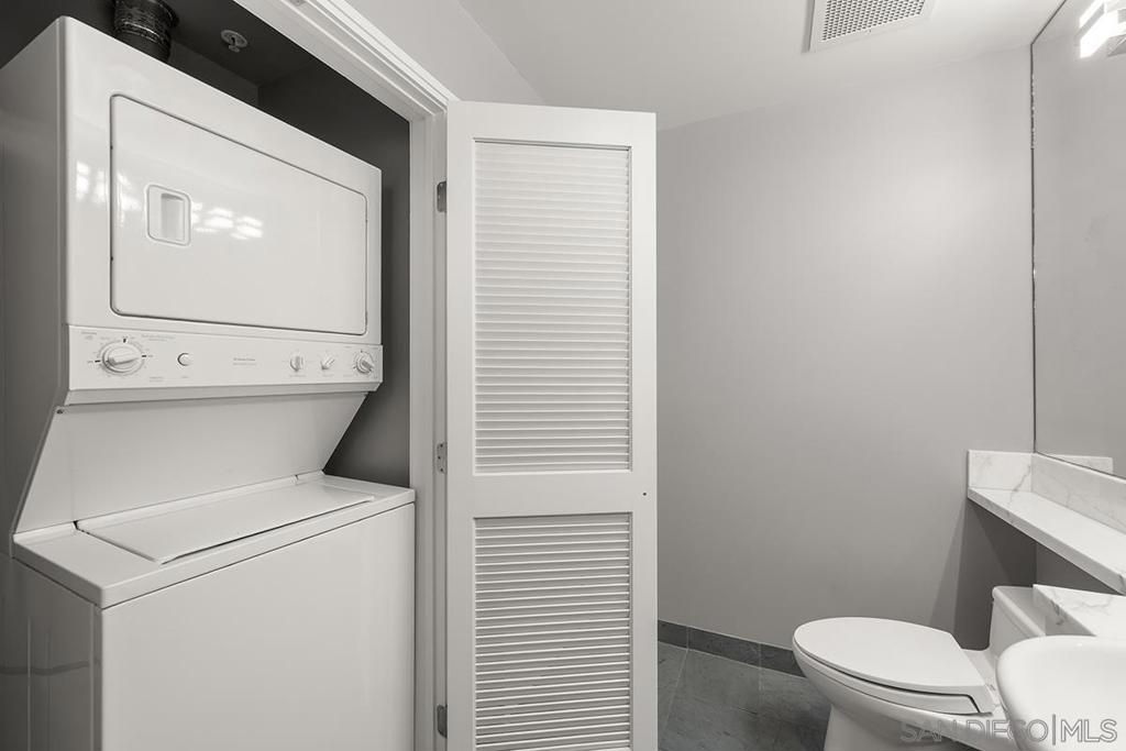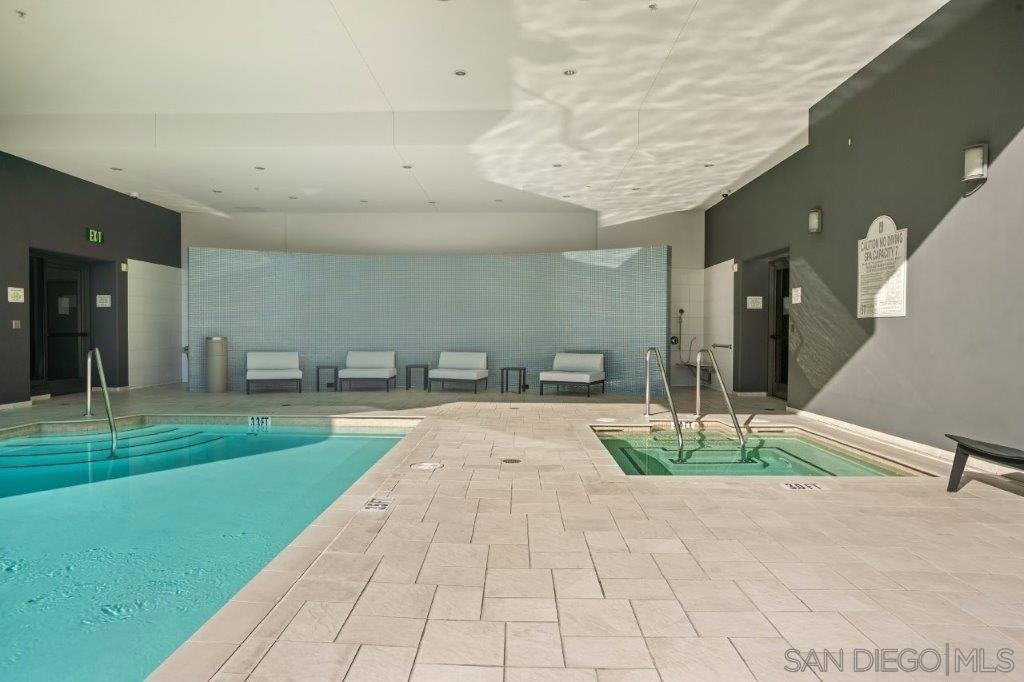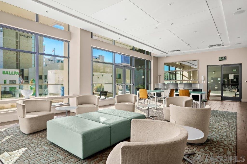 Welcome to your perfect perch in the sky! This highly sought-after southwest corner residence at Alta delivers awesome panoramic views of the San Diego Bay, Point Loma, and the glittering Downtown skyline. With freshly refinished wood floors, the open floor plan is framed by expansive windows offering natural light, a sleek kitchen with stainless appliances, modern cabinetry with frosted glass accents plus a one-of-a kind custom built-in buffet featuring cabinets, drawers; all with quartz counters. Both bedrooms include beautiful views, ceiling fans, and organized closets with frosted glass doors. The bathrooms feature marble countertops and slate tile flooring for a clean, modern finish. Additional features include an in-unit washer/dryer, powder room, storage cage, and a secured parking space, everything you need for effortless urban living. Alta is a building as unique as you are with distinctive architecture by Perkins and Company. Perfect for the active Downtown dweller, residents can take advantage of a 50’ indoor/outdoor pool, spa, large fitness center, and a luxe communal club room with home theater and pool table. Additionally, Alta prides itself on featuring energy efficient appliances and mechanical systems for lower utility costs. Top-notch amenities, fabulous design, and professional, on-site community management combine for one of the best HOA values in all of Downtown San Diego! Situated in East Village on the edge of the city’s historic Gaslamp Quarter, enjoy a premium location only steps away from Petco Park and convenient access to endless shopping, dining options, and night life.