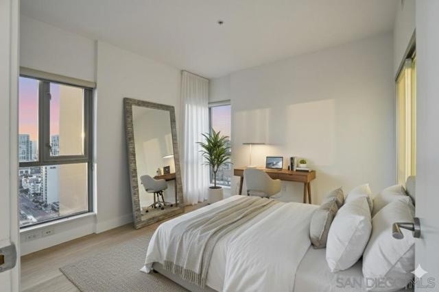 "Penthouse Vibes at The Alta: Seventeenth Floor, Southwest Corner, Overlooking Downtown and The Bay" WHAT WE LOVE: There are homes you walk into and there are homes that hit you. This one hits you. Seventeenth floor. Best corner. South plus west exposure. Floor to ceiling glass pulling in the Coronado Bridge, the bay, the ocean, and sunsets that glow across the entire skyline. A terrace that exceeds the size of the interior living room and feels like a floating room in the sky! Light everywhere. Views everywhere. Energy everywhere. This is elevated downtown living at its finest. Modern finishes, move-in-ready stylings and loaded with amenities including Heated 50' Pool, Spa, Gym, Meeting Room, 2-Parking Spaces, Guest Parking & Secured Storage Locker. WHAT WE LOVE, CONT..: The entire living space feels alive because every direction you turn, the floor to ceiling glass pulls your eyes back out to the skyline. Morning, midday, or night, the views keep revealing something new, something you didn’t notice before. It feels like the city is moving with you, always offering another little moment to catch. Add that this is the coveted G layout, already rare in the building, and having it on a floor this high makes it even more special. Dual wing bedrooms offer privacy, while the primary bed offers two closets as well as in-unit laundry. The kitchen offers clean contemporary cabinetry, stainless Fisher & Paykel appliances including double-door dishwasher, and a quartz entertainer style island. And then there is the lifestyle. From this corner of the sky you are steps to the Marina, Little Italy, the Gaslamp, cafes, ballpark nights, waterfront walks, rooftop dinners, and everything that makes downtown San Diego feel alive. This residence blends elevation, openness, and connection to the city in a way that simply does not show up very often.
