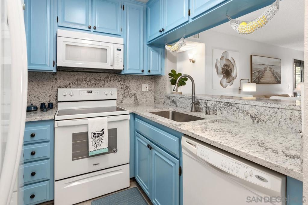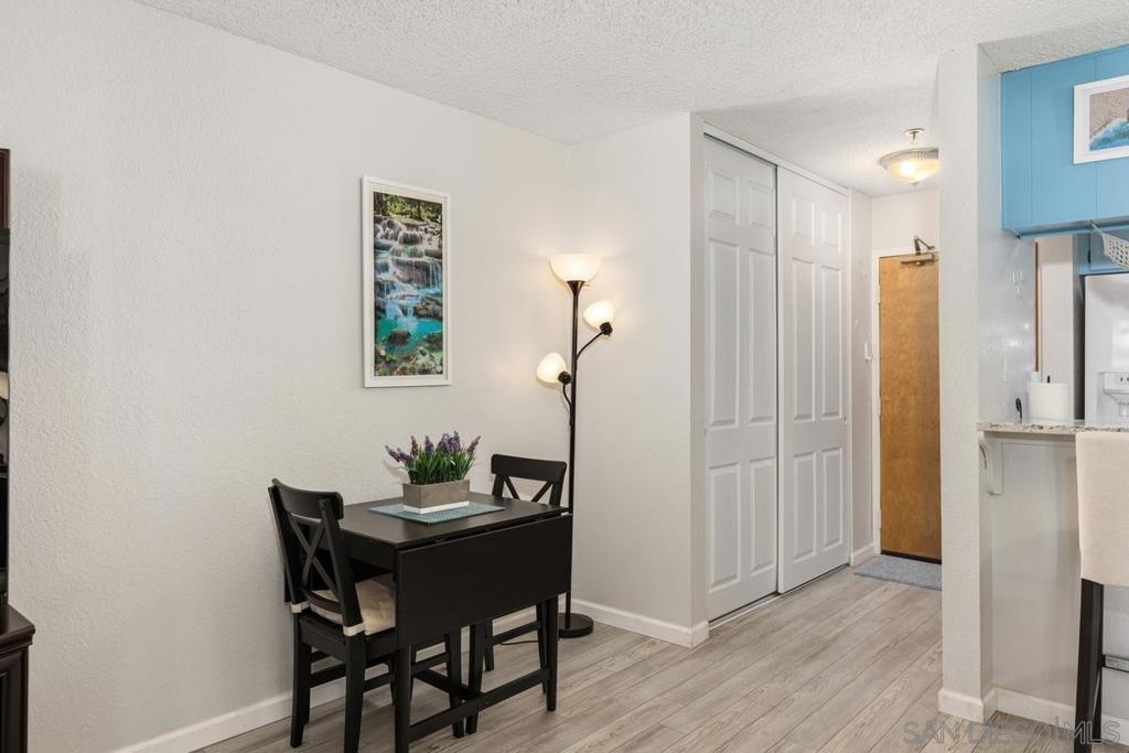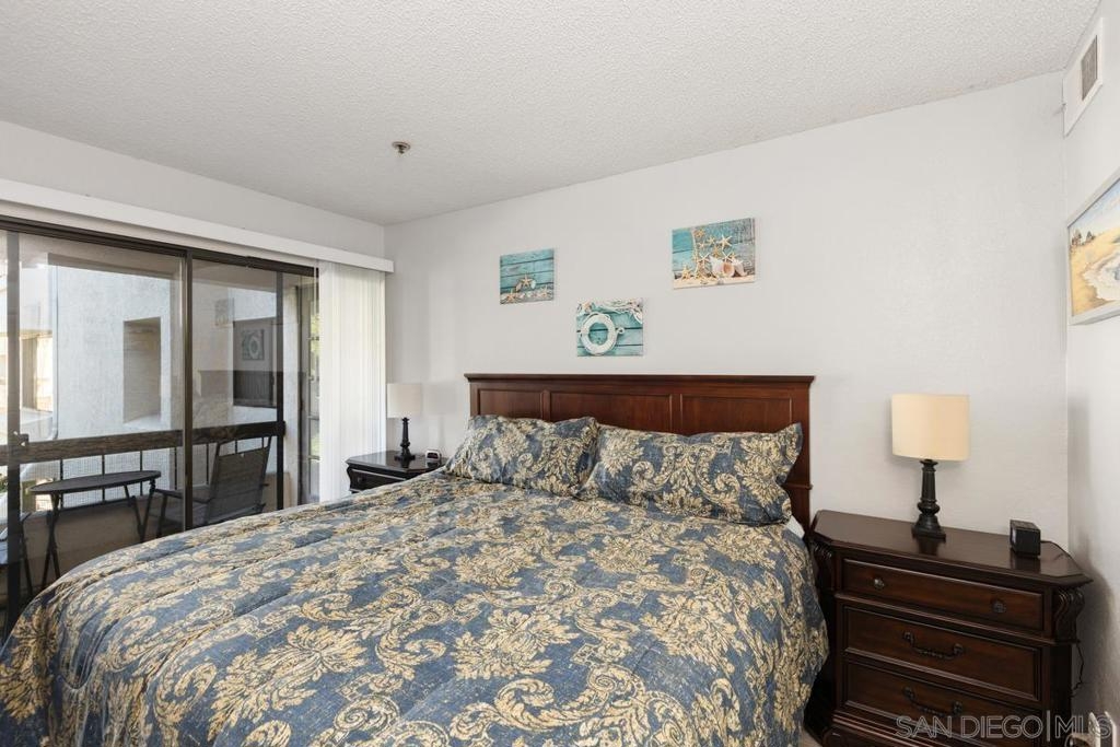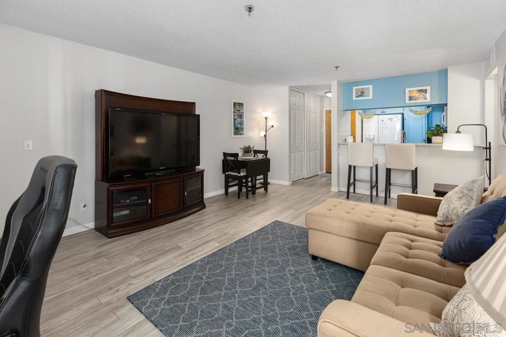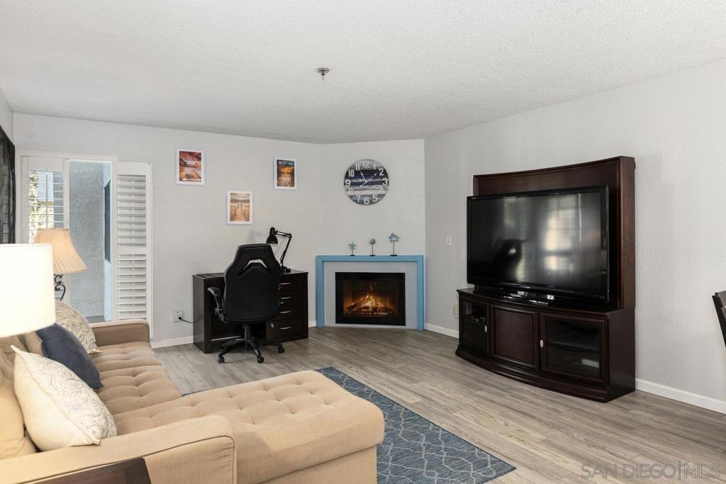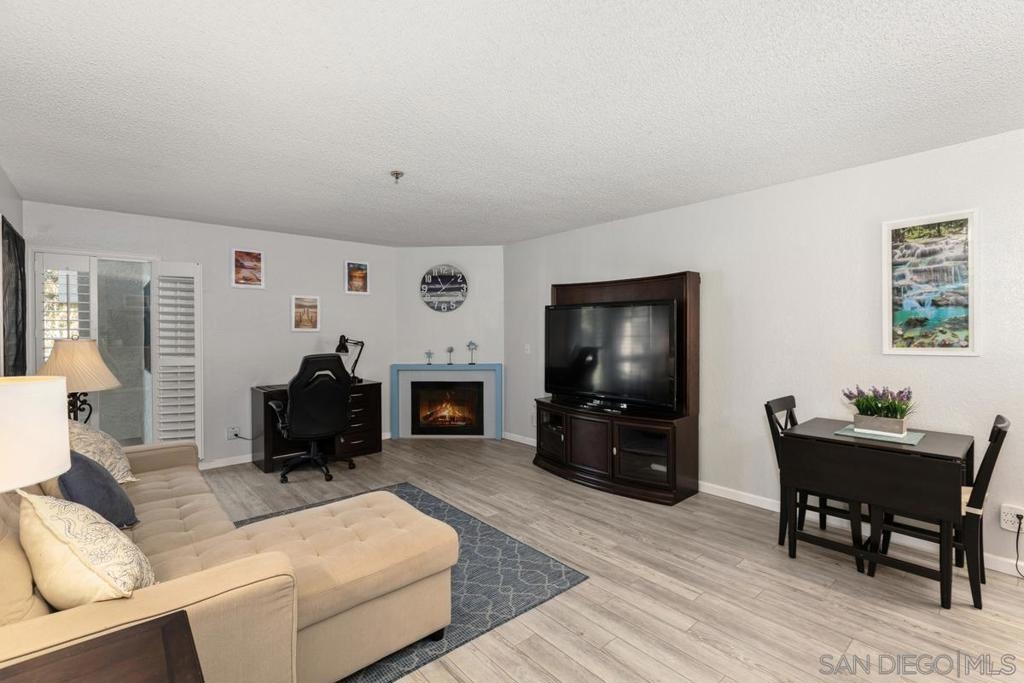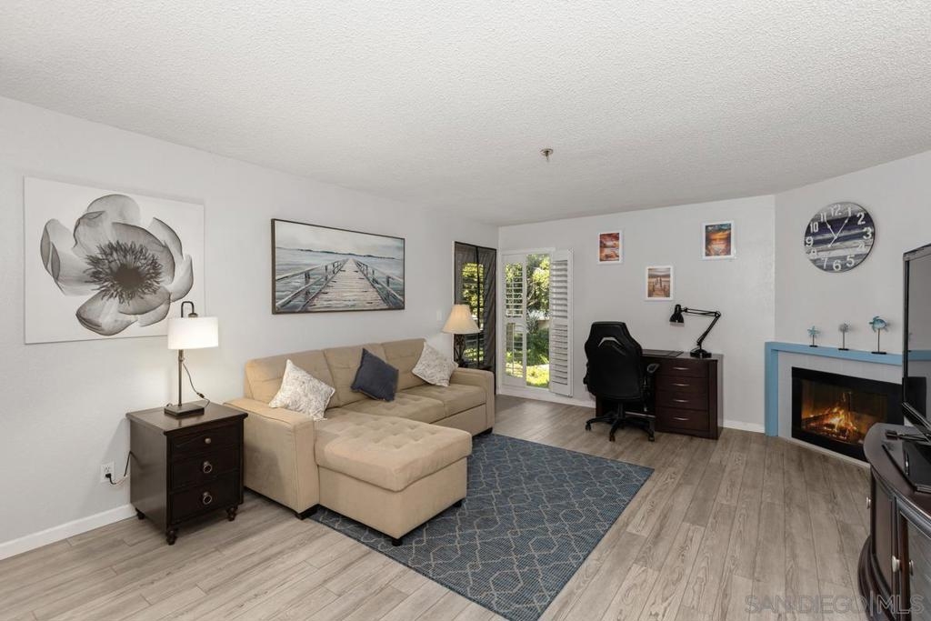 Welcome home to this beautiful, spacious, second-floor one-bedroom condo, nestled in a secure gated community with 24/7 guard service. Completely remodeled with a fun beachy kitchen, gorgeous bathroom, and luxury vinyl plank flooring throughout. Enjoy cozy evenings by the gas fireplace and the convenience of a spacious walk-in closet, ample in-unit storage, plus additional storage just outside the unit. Take in picturesque views from your private balcony overlooking a peaceful, secluded courtyard. Presidio Place offers resort style living, rich with amenities, including: • Multiple pools, saunas, and a hot tub • Tennis courts and a tranquil lagoon • Community garden • Beautifully landscaped grounds Centrally located, this complex is just minutes from the beach, the University of San Diego, Fashion Valley Mall, and a variety of dining and entertainment options. Whether you're looking for a peaceful retreat or a place to entertain, this condo offers a perfect mix of comfort, convenience, and amenities!