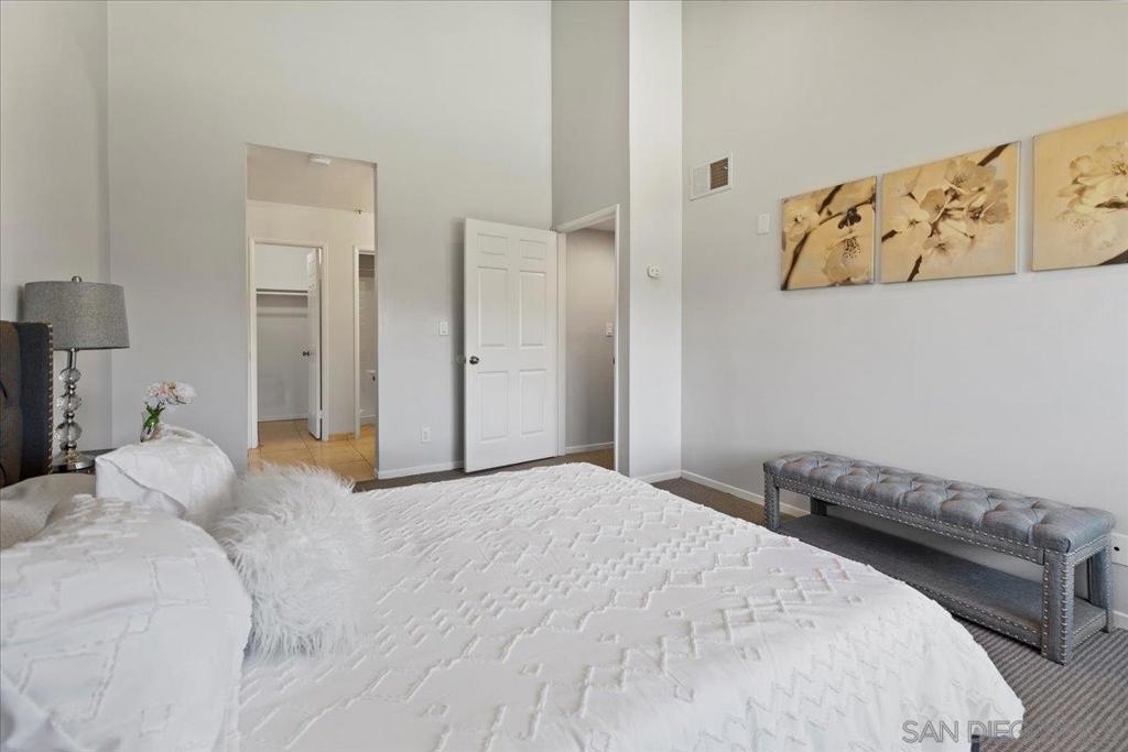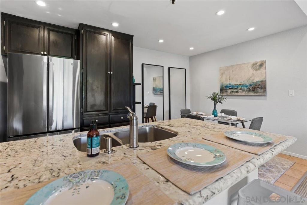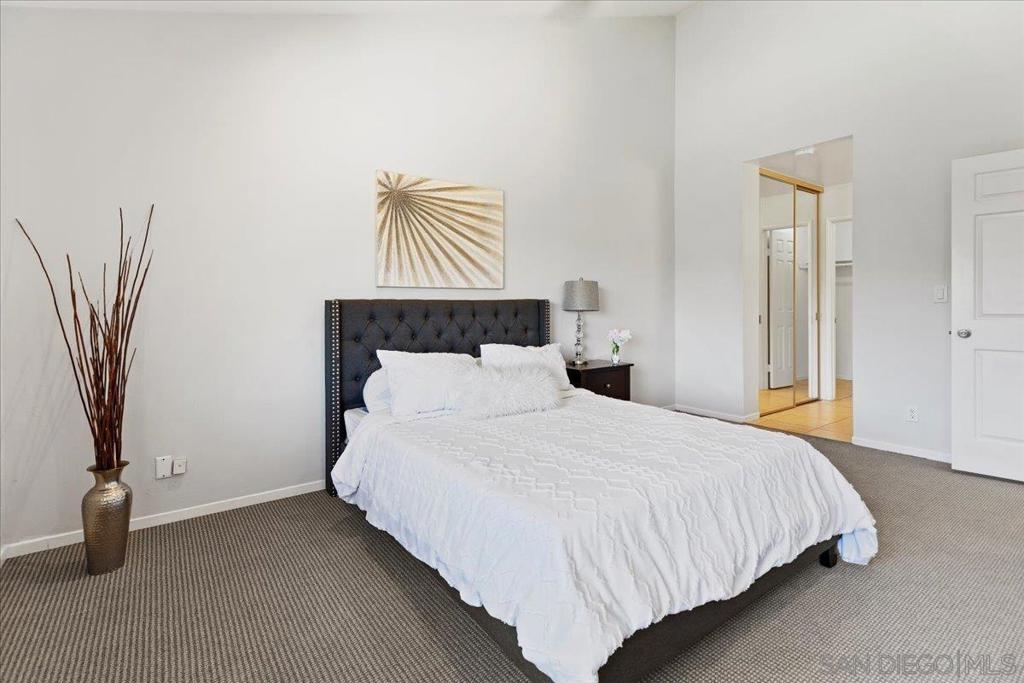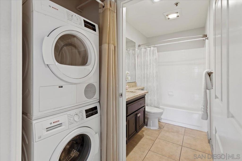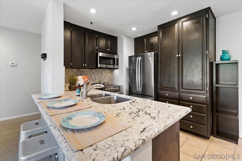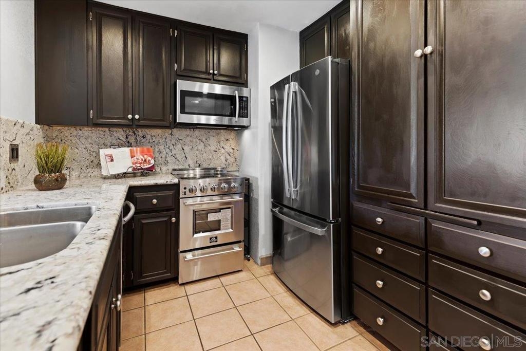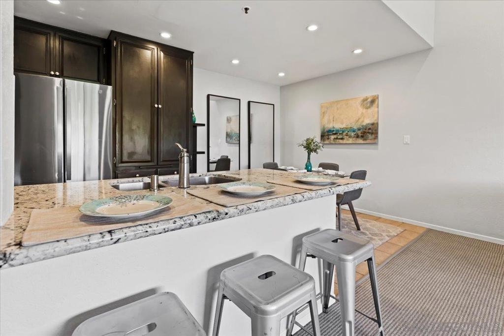 Embrace luxury living in this move-in ready, top-floor unit featuring 2 bedrooms and 2 bathrooms, with breathtaking southern views of the mountains and lagoon below. The expansive, vaulted ceilings and private balcony enhance the open and airy ambiance, while the neutral color palette provides a timeless backdrop. The designer kitchen is a chef's dream, boasting granite countertops, a breakfast bar and stainless steel appliances. Recessed lighting, central air and heat, cozy fireplace and ceiling fans with remotes add to the comfort and sophistication. The primary suite offers a large walk-in closet and ample counter space, complemented by the convenience of an in-unit washer and dryer. This exquisite residence includes underground parking and is nestled within a resort-style complex that offers 24-hour gated security, a pool, spa, clubhouse, basketball and racquetball courts, picnic areas, and lush landscaping. Located just minutes from the beaches, downtown, Balboa Park, Fashion Valley Mall, the airport, and an array of restaurants, with easy freeway access, this home truly has it all. Don't miss the opportunity to experience this exceptional property—it's a must-see!