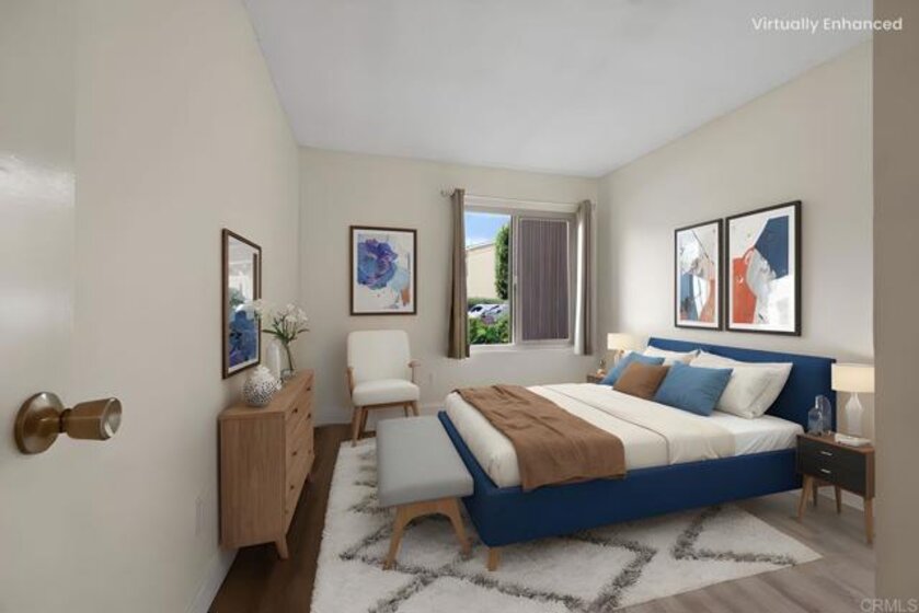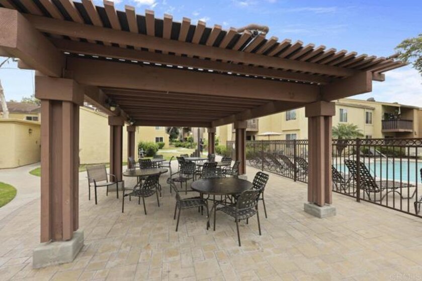 Location, location, location! Welcome to this charming, recently remodeled two bedroom condominium in the heart of Mission Valley. Thoughtfully upgraded throughout, this home features a modernized kitchen and bathroom, new window coverings, and stylish luxury vinyl plank flooring. The primary suite offers a spacious dressing area with it's own sink, direct access to the full bathroom, a linen closet, and a roomy walk-in closet. Step outside to the sun filled private patio complete with lush artificial turf, a secure private storage closet, and a brand new retractable sunshade. With the shade open, enjoy views of the surrounding neighborhood and car park--an ideal spot for a potted plant garden or relaxing outdoors. Located in the highly desirable Rancho Mission Villas, residents enjoy beautifully manicured grounds, tranquil water fountains, ample guest parking, two pool areas with Jacuzzis, picnic areas with furnishings, and BBQ's, a gym, tennis courts, secured restrooms, and a stunning clubhouse (see CC&Rs for details). This home is within walking distance of shopping, dining, the trolley station, a popular gym, and the exciting Snapdragon Stadium. Imagine hopping on the trolley just steps from your home to East County, Downtown, or North County. Prefer to drive? You'll appreciate the quick and easy access to Highways 8 and 15. Professional grade laundry rooms are conveniently located throughout the complex. Enjoy living in the vibrant Mission Valley community--homeownership at an affordable price with outstanding amenities. Welcome home to Rancho Mission Villas.