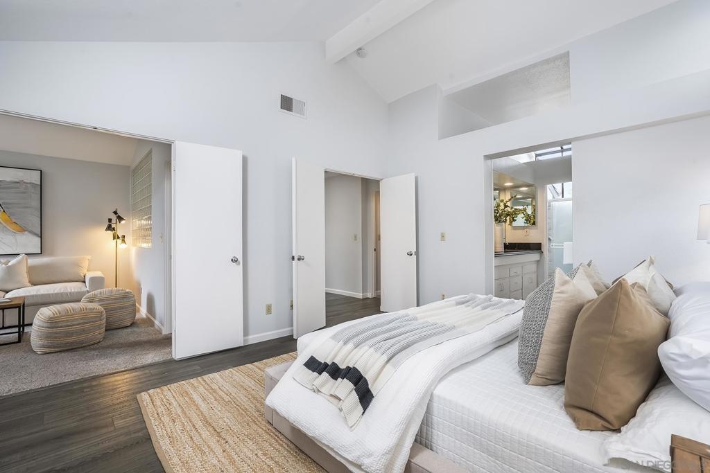 The One You Have Been Waiting For! Set along "The Ridge of Cervato" in Highly sought University Canyon East! This Contemporary Townhome is the Largest Floor Plan & Enjoys a Hillside Location with Views of the Beautiful USD Campus with a Peek of the Ocean! Award Winning Architecture by Barry Berkus showcases a Dramatic 2-story Living Room with Gas Fireplace, Abundant Natural Light, 2 Bedroom Suites + Den/Office (optional 3rd bedroom), over 1500 Square Feet, Skylit Stairwell, 2 Car Garage & Southwest Facing Backyard with Lovely Patio & Water-Wise Landscaping! Enjoy Wonderful Breezes from Mission Bay & Tecolote Canyon with Miles of Hiking/Biking Trails! Gorgeous Community Saltwater Pool & Spa are just steps away! Low Monthly HOA fees of $475.00 cover Roof, Insurance, Exterior (Stucco, Wood Trim & Paint), Trash Pickup, Street Maintenance, Common Area Landscaping and Pool & Spa! Fantastic Central Location minutes to Fashion Valley, Popular Bay Park Restaurants, Mission Bay, Beaches, Old Town, Airport & more!