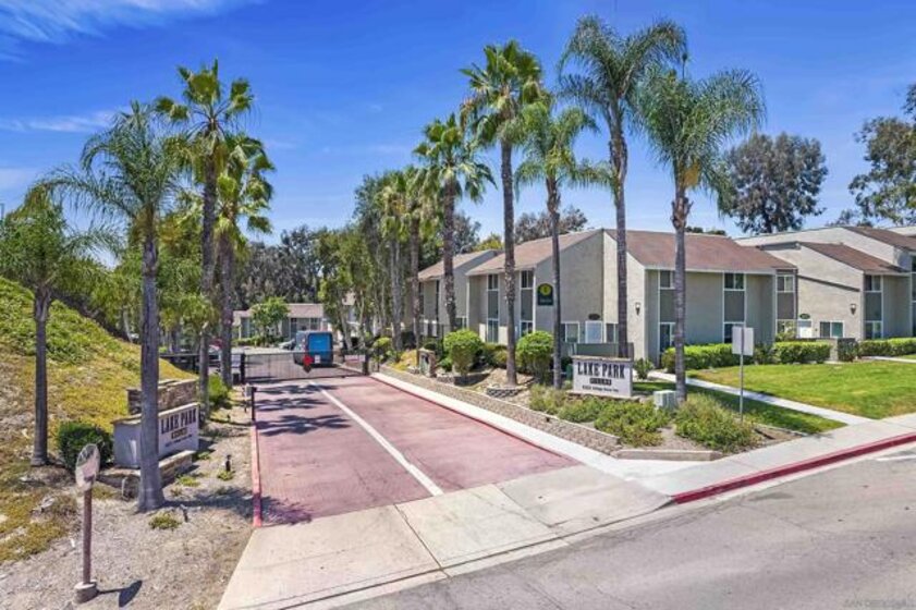 FHA & VA approved. Discover one of the most affordable 3-bedroom, 2-bathroom condos in San Diego County! This single-level, first-floor, END unit offers an unbeatable location within Lake Park Villas. It backs directly to open green space, providing serene views from the kitchen, dining area, and master suite. Plus, it's conveniently close to laundry facilities and community pool. The kitchen boasts granite slab countertops and beautiful cabinets. It's equipped with new stainless steel fridge and dishwasher. Features 3 bedrooms, with 1 master suite. Luxury Vinyl Plank flooring throughout The living room is bright and airy, with a sliding glass door that opens to a fenced front patio, extending your living space outdoors. A spacious storage closet in the living room extends under the exterior stairwell, providing ample storage. One assigned carport with option to obtain 2nd parking permit. HOA fees including water/hot water/trash/sewer/common area maintenance/limited insurance. Recent plumbing updates. Lake Park Villas offers a prime location within walking distance to shopping and restaurants (Target, Wal-mart, Kohls) with easy freeway access and close proximity to San Diego State University and more
