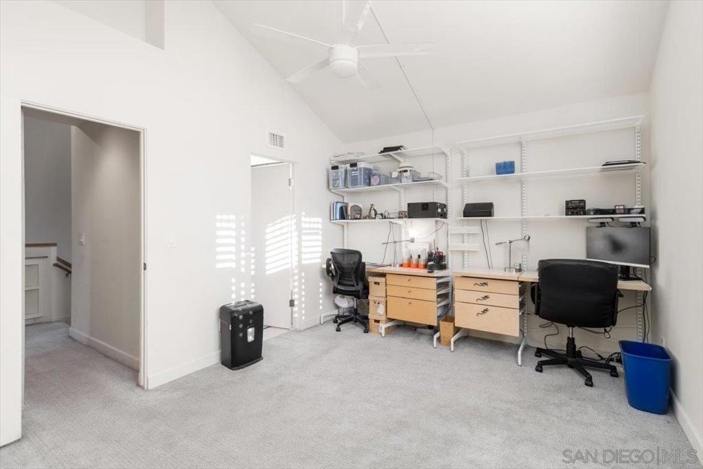 One of the best kept secrets in San Diego! Located just below USD, University Canyon West (and East) boasts abundant foliage, canyon breezes, and peace/quiet, plus all the amenities you expect. Featuring two primary suites plus indoor laundry, this floorplan is one of the most popular and in a prime spot in the community with virtually no need for A/C (tho it was installed in 2019) due to airflow throughout when windows are opened. Epoxy garage floor, extra fridge, ample storage, newer remodeled kitchen, private backyard and side yard featuring abundant flowering plants and fruit trees. A gardener’s paradise! Pride of ownership is apparent, ensuring that it's a joy for you to accept the role as its new owner